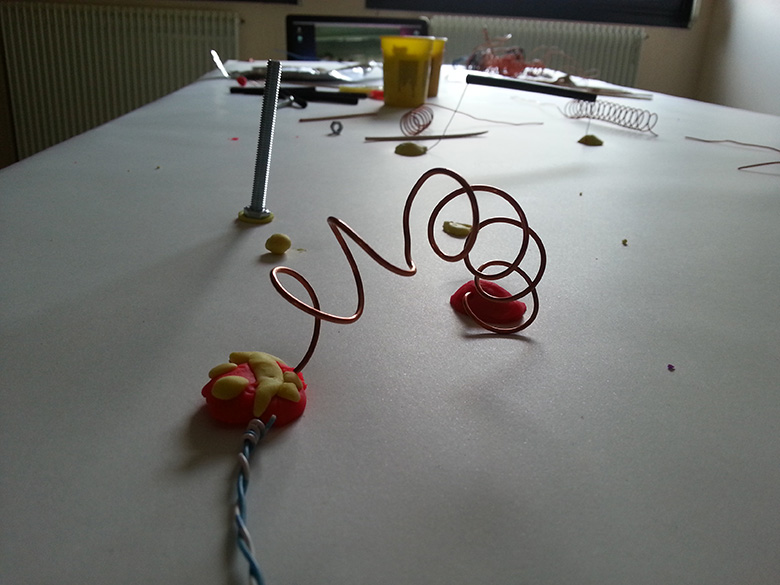 Durant ces expérimentations nous nous sommes rendus compte des possibilités qu’offrent certaines matières et de la complexité à les associer. Nous avons notamment exploité de la pâte à modeler, du scotch de cuivre, de l’aluminium ou bien même de l’eau. Nous avons constaté l’infinité de possibilité que Makey Makey nous propose pour la mise en œuvre de nos projets.