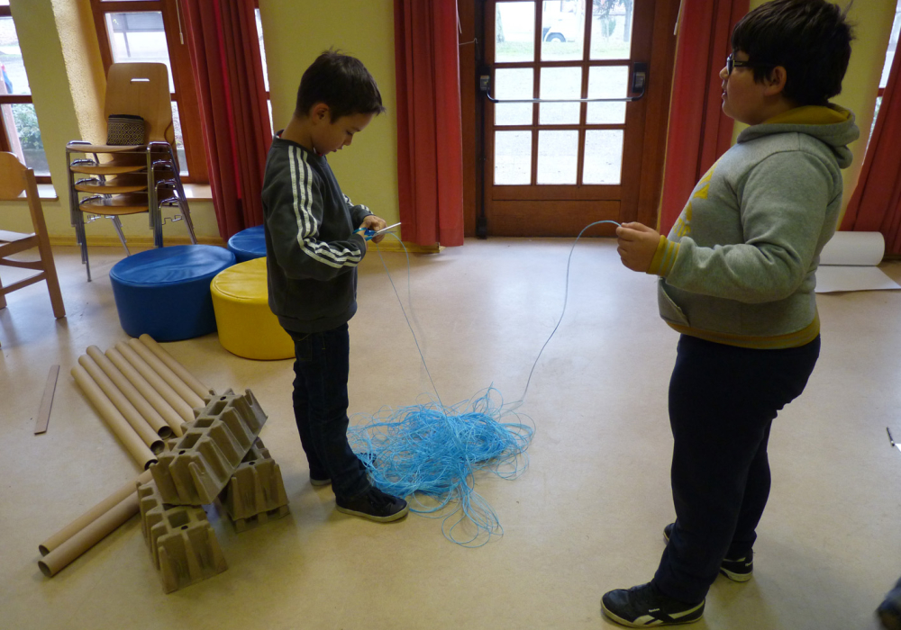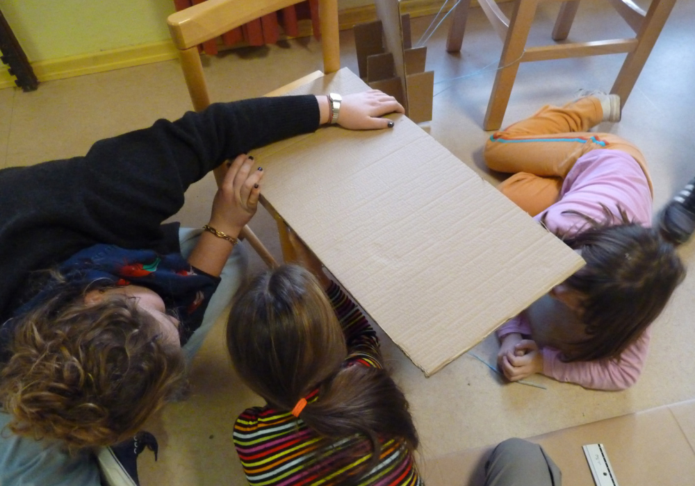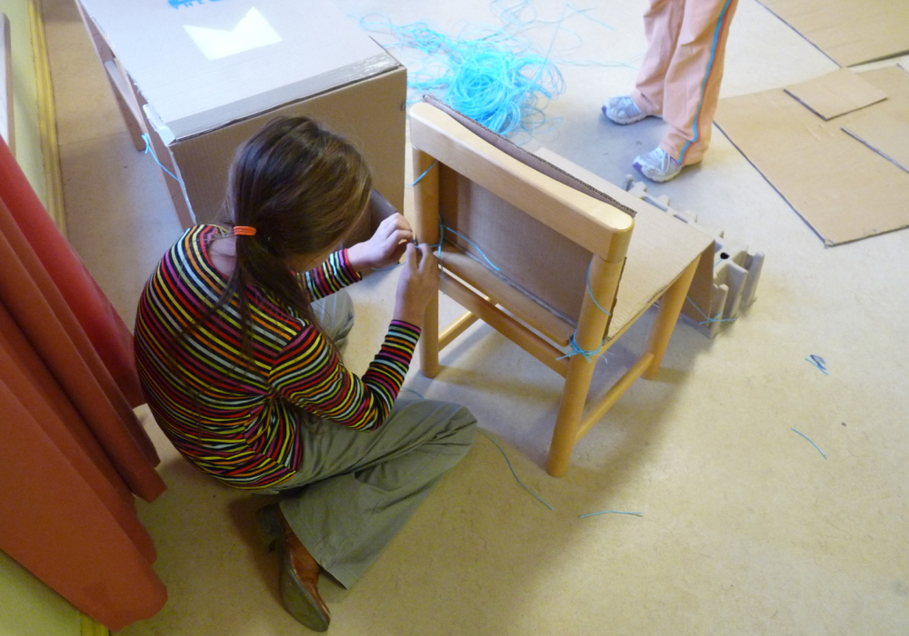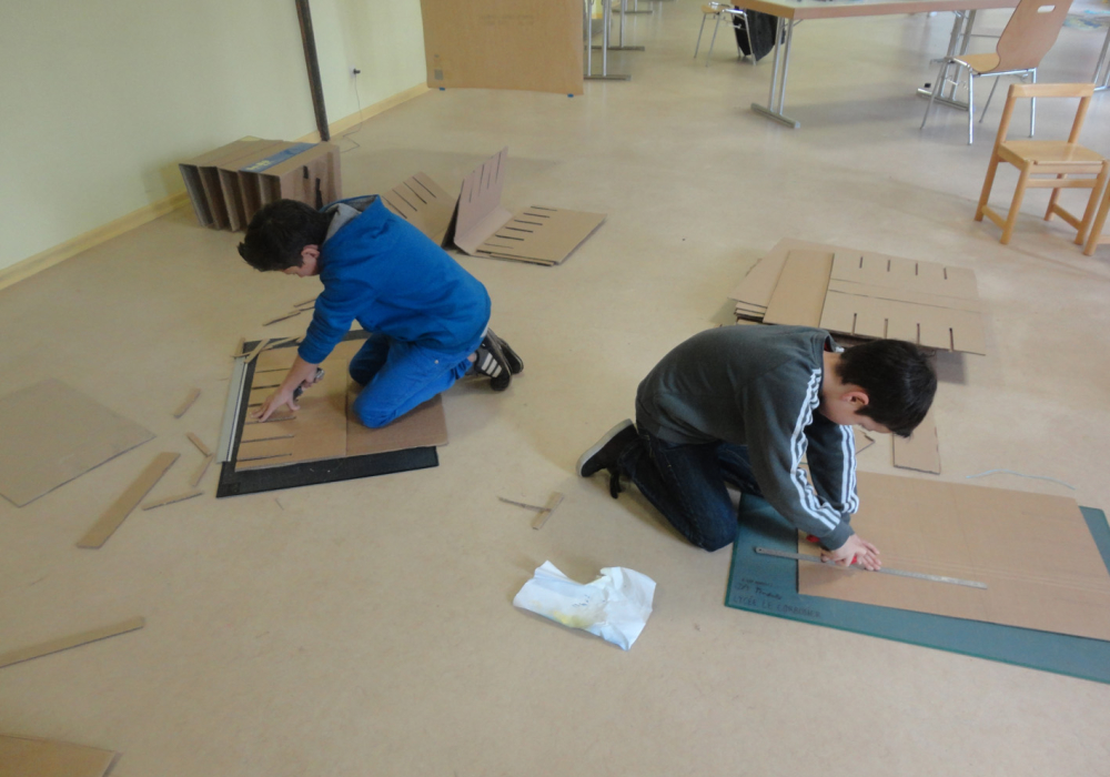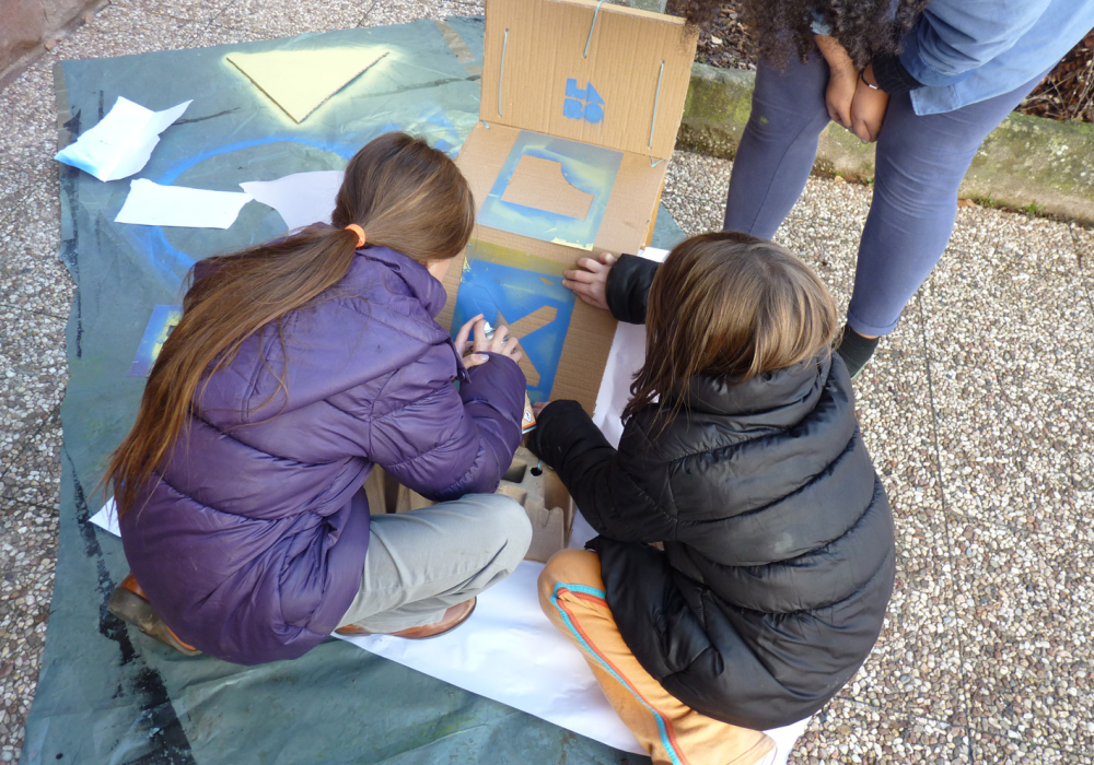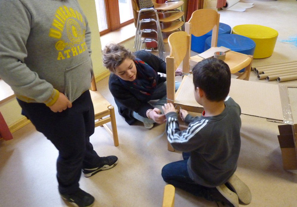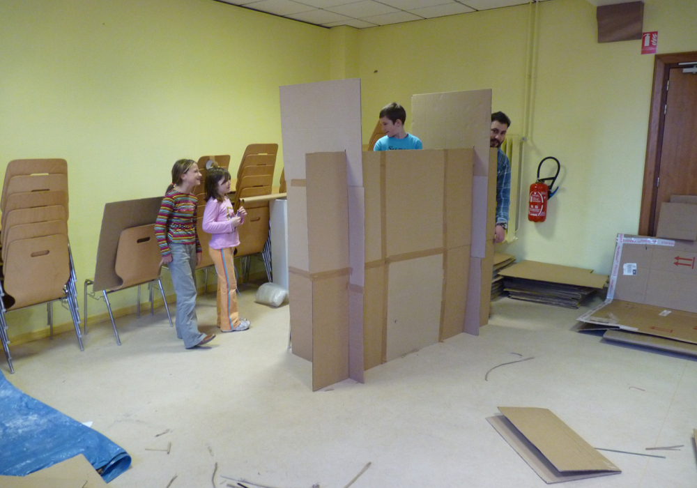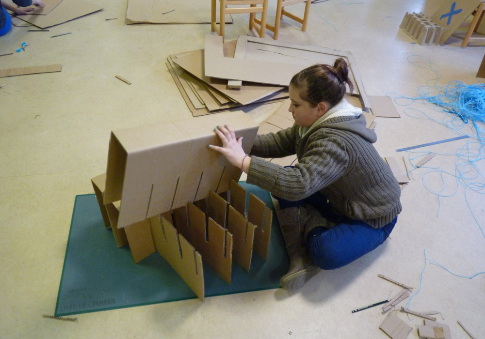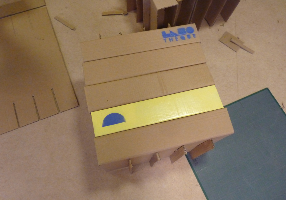 Nous sommes heureux de retrouver une partie des enfants de l’école et d’autres pour un atelier de co-construction de meubles en carton qui seront utilisés lors des ateliers du lendemain. Il faut qu’ils soient solide. Nous apprenons aux enfants des techniques d’emboîtement de cartons afin qu’ils puissent supporter des poids importants. Les enfants sont très impliqués dans l’atelier et sont très productifs. Certains créent leur propre chaise en rajoutant des extensions au mobilier existant. Les formes sont tracées, le carton est découpé, les morceaux sont assemblés, les meubles sont montés et bombés aux couleurs de la Labothèque. Un nouvel espace se dessine.