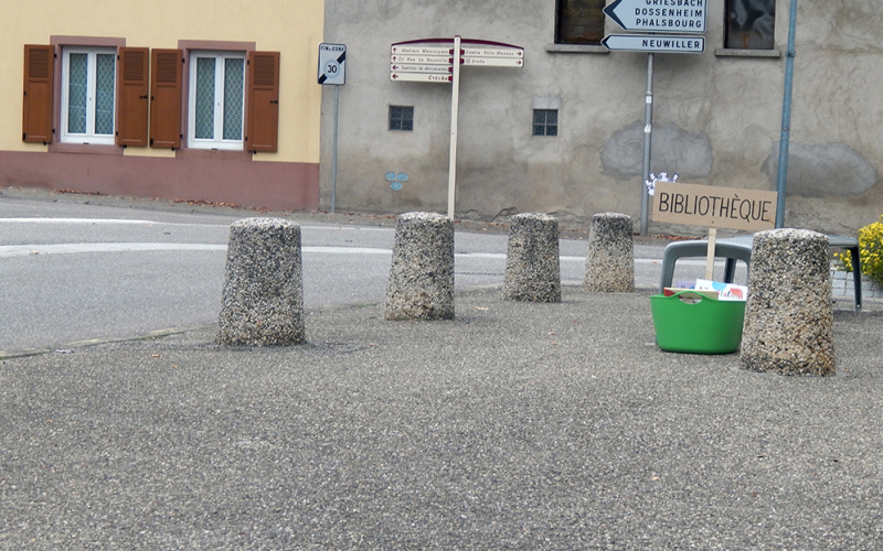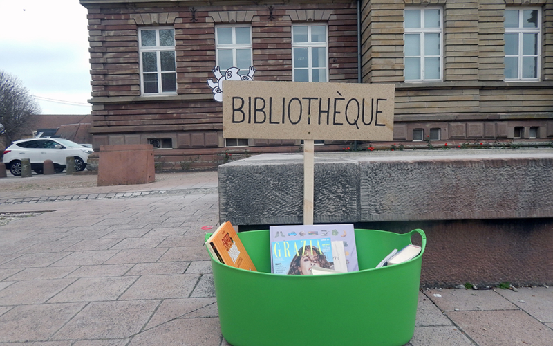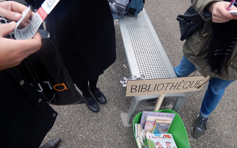Dans un second temps, aux abords d’une école primaire, nous avons observé l’intérêt des enfants face à cette mise en scène. Un échange avec leurs parents et eux nous a permis de relever que ce dispositif et son but pouvait séduire un jeune public qui semble manquer d’un accès libre et régulier aux livres, notamment dans leur école. De plus, le principe de pouvoir prendre un livre dans un espace de rue et de pouvoir le ramener quand on le souhaite ou de l’échanger contre un de leurs livres en a ravi plus d’un.
