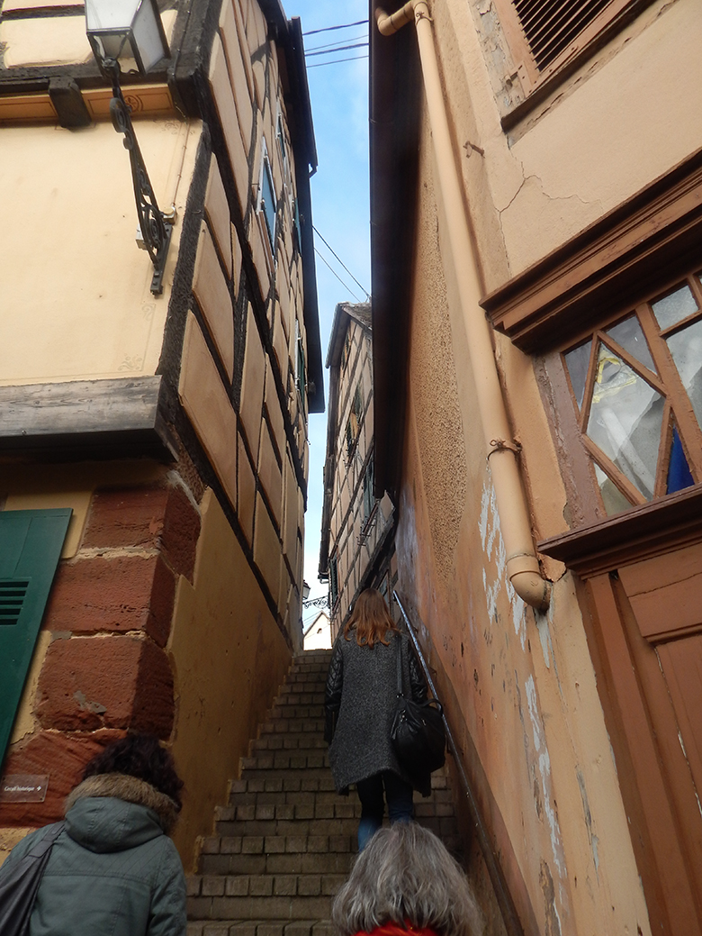 Bouxwiller, ville de 4000 habitants, possède un très riche potentiel de part son patrimoine culturel, historique et architectural. Elle représente la ville typiquement alsacienne avec des éléments récurrents comme les colombages, les façades colorées et la pierre. Cependant, le problème majeur et général relevé par notre équipe est le suivant : malgré les efforts de la municipalité pour animer et faire vivre la commune, les habitants restent passifs et sceptiques face aux activités et événement proposés. C’est étrangement les Strasbourgeois et autres curieux qui viennent profiter d’un théâtre professionnel, d’un musée alsatique et d’un marché de Noël conséquent : une effervescence de points d’intérêts dont certains qui ont reçu notre visite, à savoir la mairie, une maison alsacienne et le musée alsatique. Le musée de Bouxwiller met en avant l’histoire et le patrimoine de la ville. Nous avons pu constater, outre la richesse d’éléments exposés, un soin tout particulier apporté à la scénographie et à l’identité visuelle du bâtiment. La mairie se pare également de beaux vestiges architecturaux en arborant d’imposantes portes en bois sculptées et des toiles murales d’époque dans les salles de réunion.