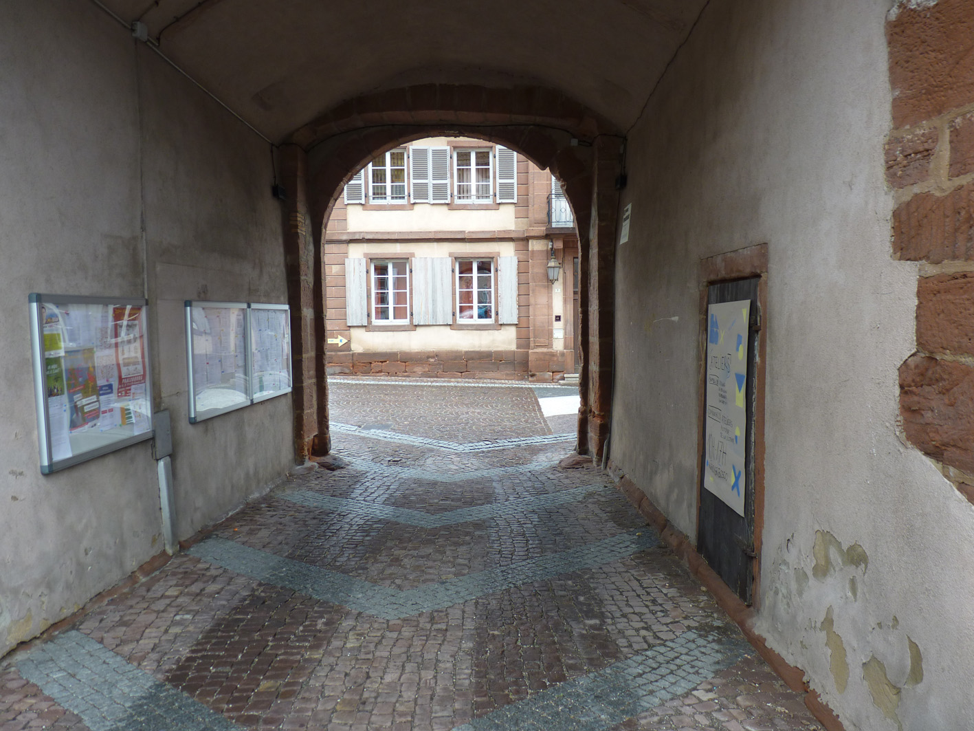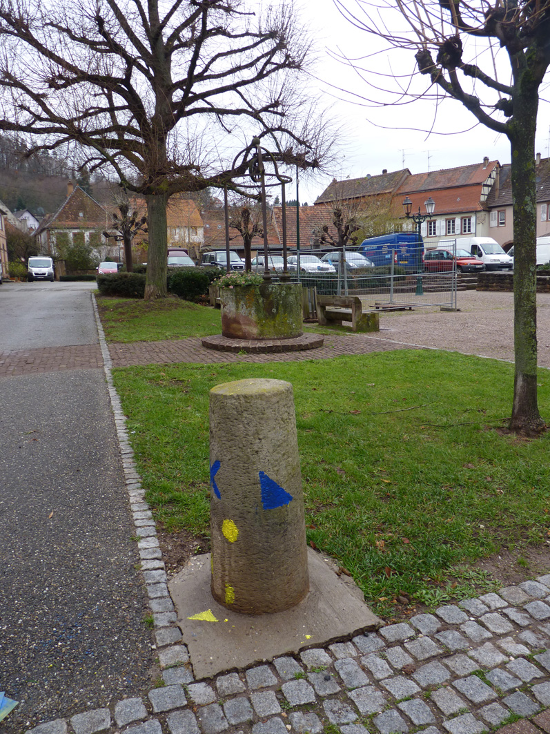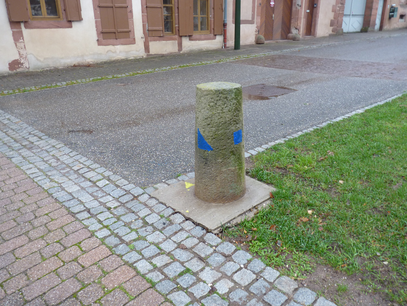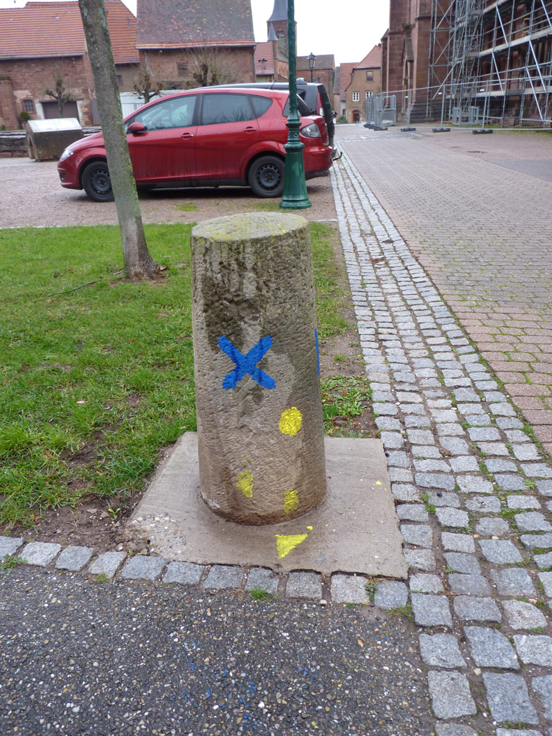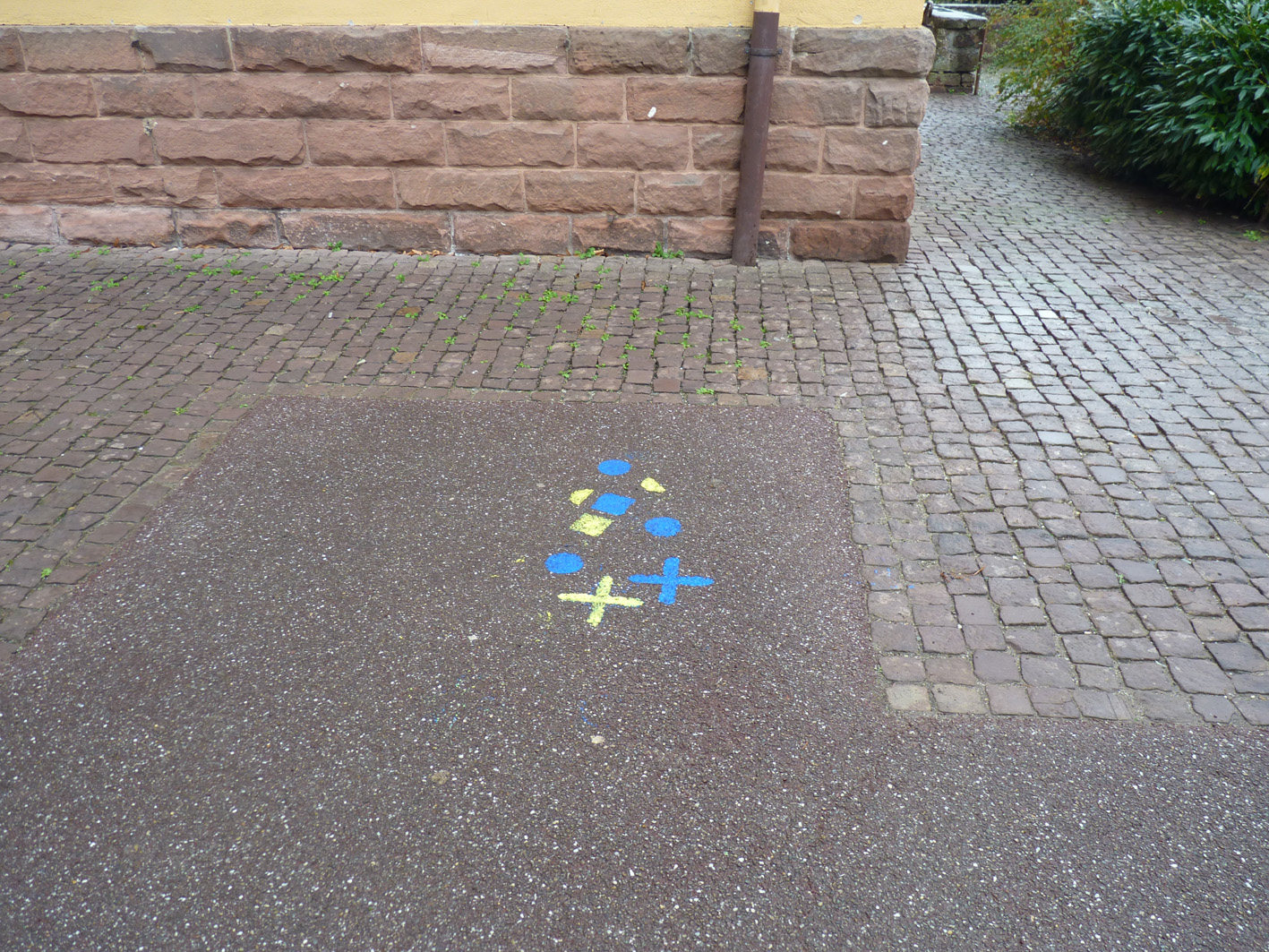 Premier jour de la Labothèque! Aujourd’hui c’est la co-réalisation de la communication avec les enfants de l’école de Neuwiller! Du bleu, du jaune et c’est parti! Les enfants réalisent avec nous des affiches sur du carton que nous affichons directement dans la rue. On réalise aussi des flèches pour la signalétique et les éléments de l’identité sont déclinés sur le sol à l’aide de pochoirs.