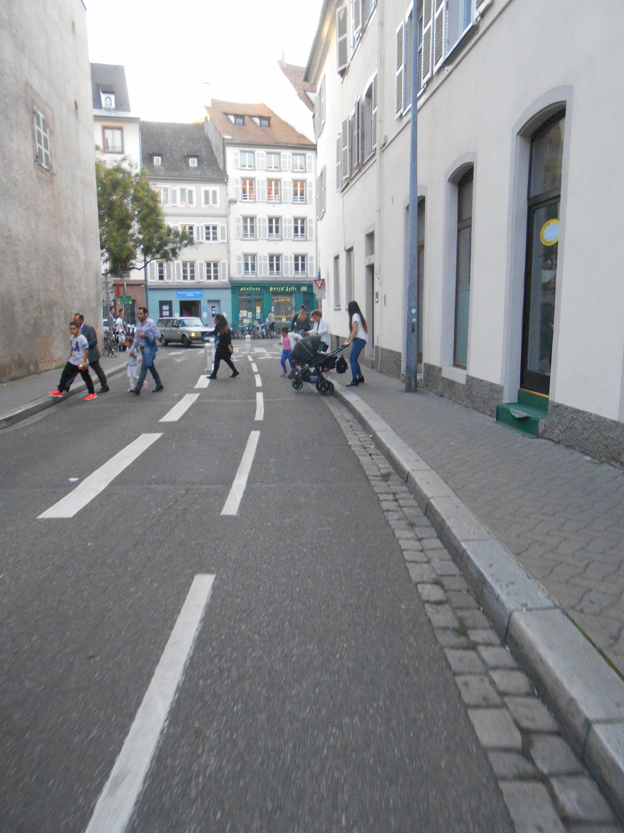 Rendez-vous samedi à 17 heures à la station de Tram Etoile Bourse et HOP ! On s’engage pendant plus d’une heure sur les pistes. De la rue Alsace Lorraine à la Place Kleber. De la Place Broglie jusqu’au Boulevard de la Victoire. En Passant par le Quai des Alpes jusqu’au Quai Louis Pasteur, puis direction Illkirch-Grafenstaden par l’EuroVéloroute. Hé oui on a bien roulé et c’était le pied. On a adoré parcourir la ville à vélo, par contre plusieurs difficultés ont pointé le bout de leurs nez.
