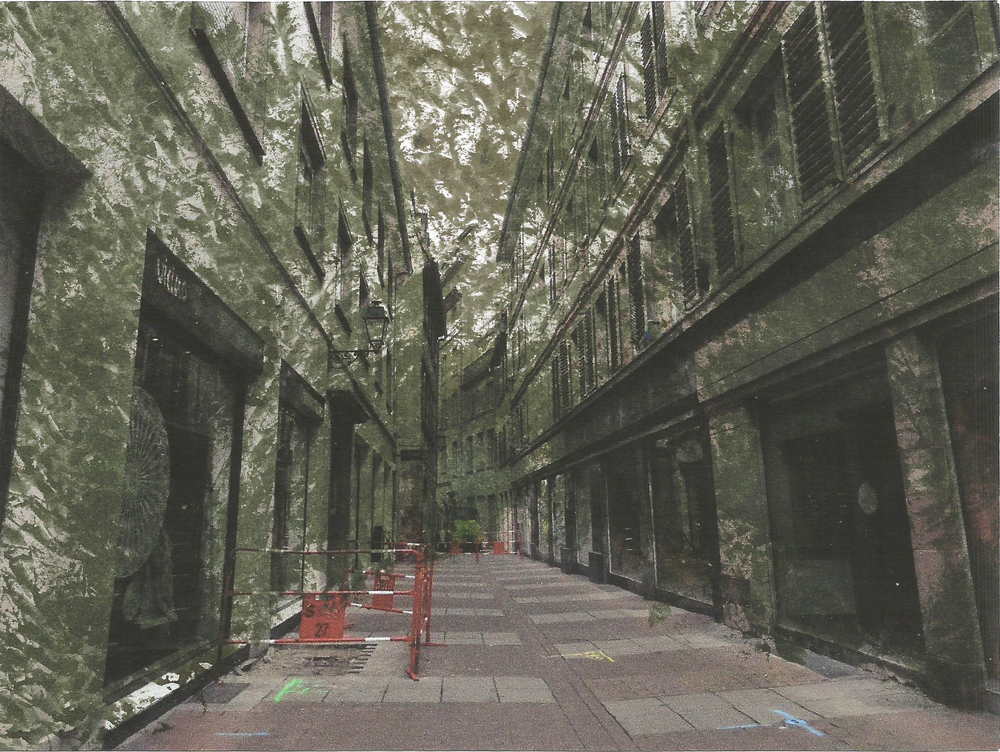 Nous avons opté pour l’utilisation de modules. Cela permet de ne pas trop empiéter l’espace déjà serré de la rue tout en gardant notre idée de contraste entre l’installation et son environnement. Les modules sont adaptés pour différents types d’usages, le passage, debout, pour bénéficier des bienfaits du soleil durant les trajets, ou la pause, assis, pour profiter de l’ombre ou de la lumière selon les saisons, ce qui réunit à peu près tous les critères qui nous semblent importants.