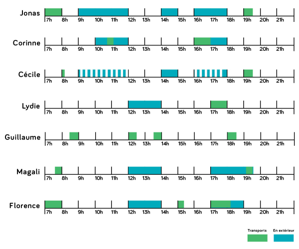 Premier point, nous leur avons demander de colorier les moments où ils étaient à l’extérieur.