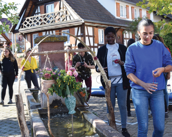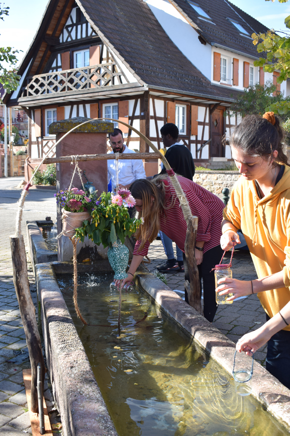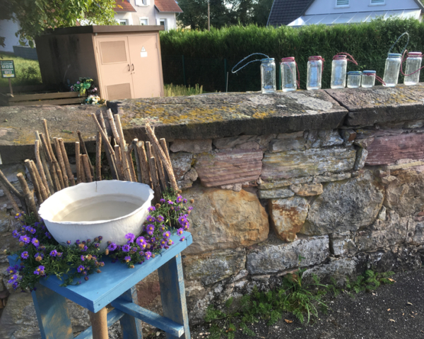 | Ô sources est un rituel de commémoration partagée pour ressouder les liens de la communauté. Il a pour vocation de réunir les habitant·es de Goersdorf au travers d’une procession le long de ses fontaines. Toutes ont une pensée dédiée aux oublié·es : Vitalité, Pardon, Paix, Amour/Amitié et Espoir. En allant de l’église au cimetière, chacun·e vient puiser de l’eau dans les sources qui résonnent avec iel pour les offrir aux tombes oubliées par une libation, en déversant l’eau chargée de toute une symbolique sur le sol. |