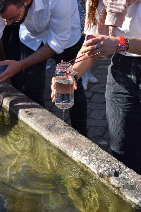 Chaque participant·e du rituel est muni·e d’un passeur lui permettant de puiser l’eau des sources.
