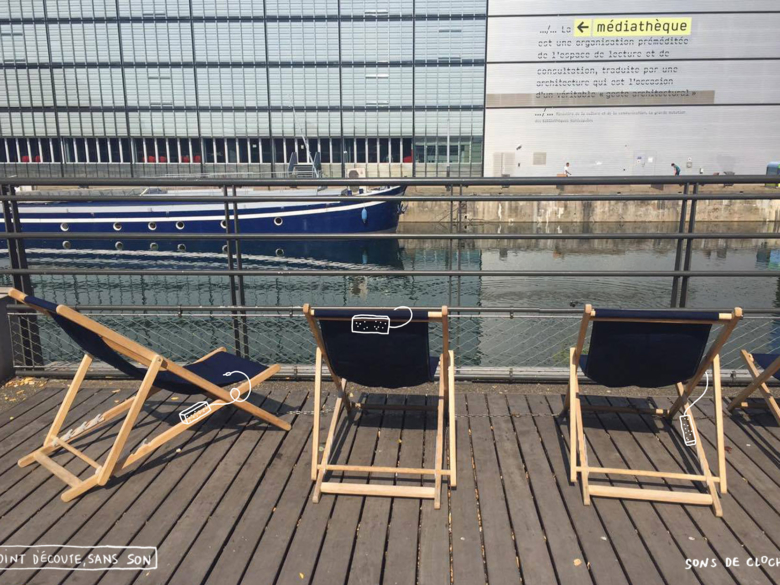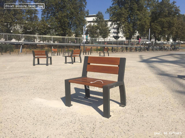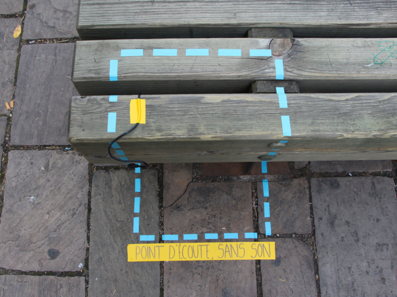 L’idée ? Les Point(s) d’écoute, sans son, vous invite à venir plugger votre télephone ou votre MP3 sur une petite enceinte et en déterminer vous même le volume au sein de l’espace public. Comment ? Ces petites enceintes signalisées sont dissimulées sur différentes infrastructures de la ville. Soyez observateurs : réverbères et assises en tout genres pourraient en être affublés…