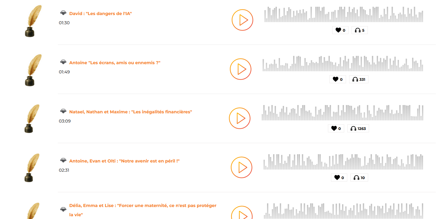 Pour que la théorie soit comprise, il fallait passer à la pratique ! C’est ainsi que les élèves, en groupes, ont choisi un sujet qui leur tenait à coeur, ont rédigé leurs propres discours, les ont mis en page et ensuite enregistrés à voix haute pour les présenter au CDI.