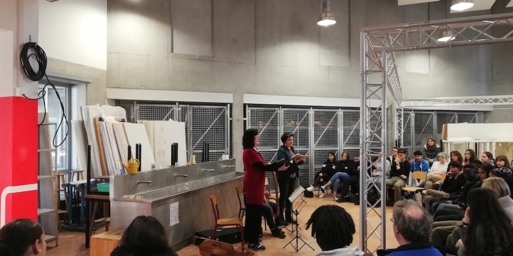 Réputé dans le monde entier pour ses interprétations de la musique du XIème au XVIème siècle, l’ensemble Alla Francesca a fait étape au lycée Le Corbusier lundi 10 février 2020 pour deux concerts de découverte. Au total, ce sont 9 classes des voies générales, technologiques et professionnelles du lycée (180 élèves et étudiants) qui ont bénéficié d’une immersion dans le monde sonore de la renaissance.