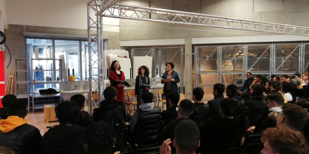 L’univers des chansons Italiennes du temps de Léonard de Vinci est généralement totalement inconnu des élèves, mais passé la première surprise d’entendre les trois voix a capella, le charme opère, résumé par ce commentaire enthousiaste d’un élève approuvé par l’ensemble de sa classe : « Monsieur au début quand on nous a dit que c’était un peu genre médiéval on a eu peur. Mais en fait c’était génial et super intéressant ».