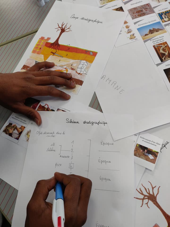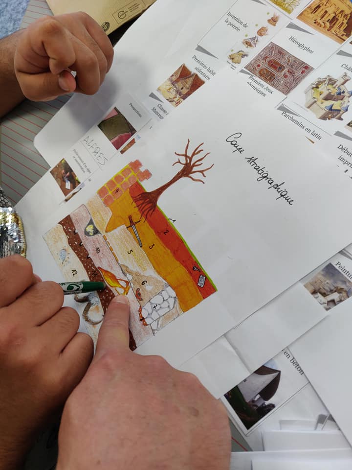 Au CDI ils ont récemment découvert les différentes méthodes de fouilles archéologiques et ont aussi retracé ensemble les grandes étapes d’un chantier de fouilles. Ils ont aussi été initiés à la lecture d’une coupe stratigraphique et ont même complété un diagramme de Harris qui permet d’établir la chronologie relative des différentes couches.