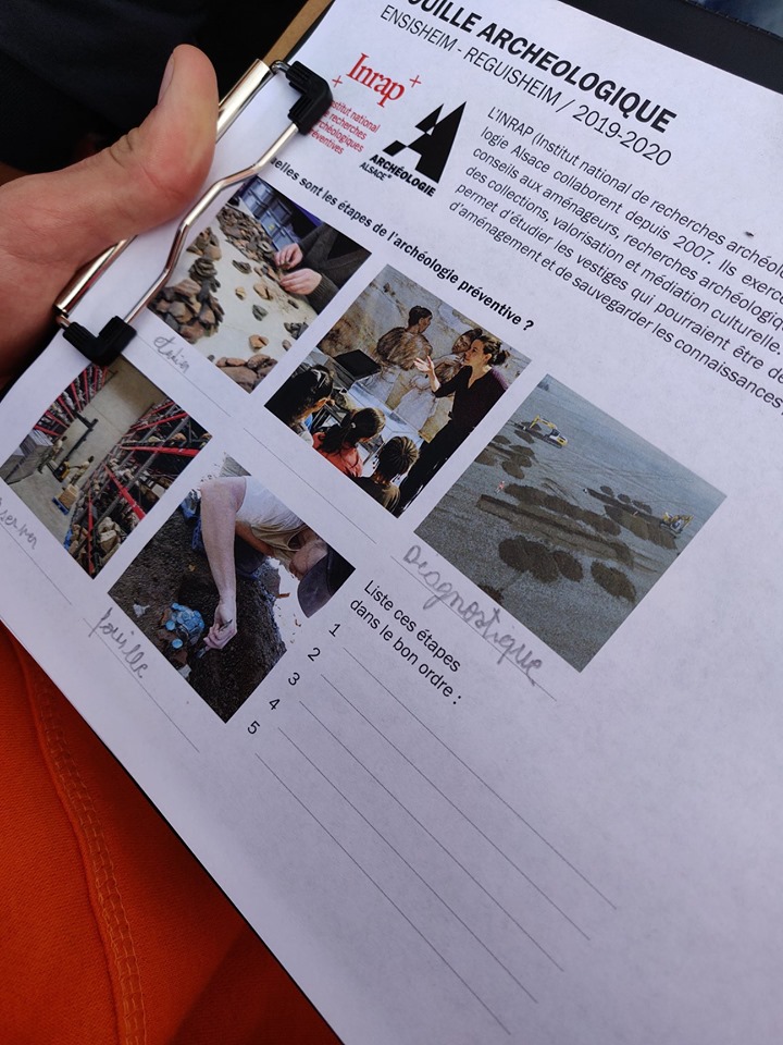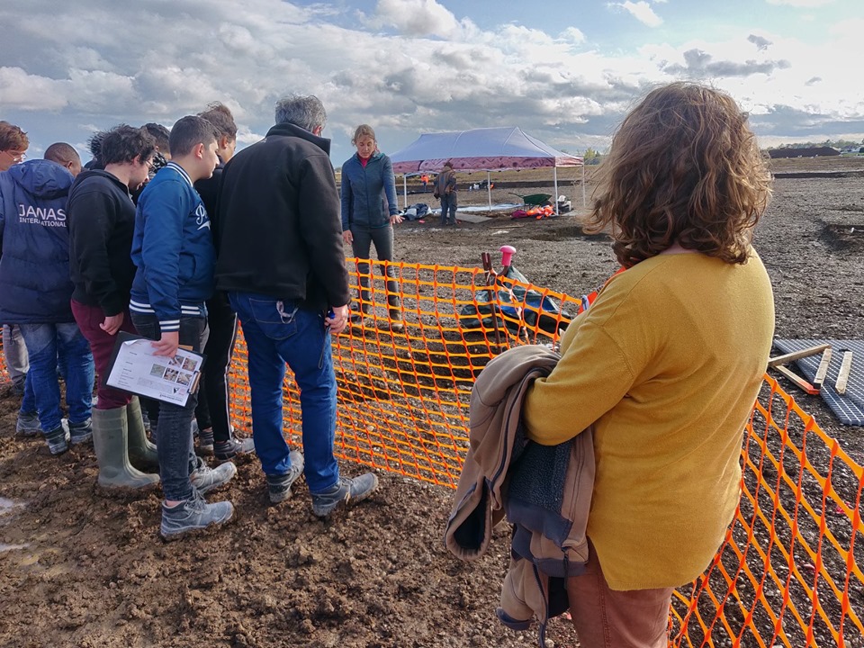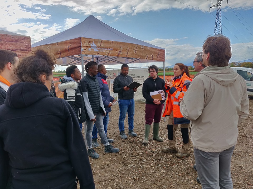 Ainsi parés, ils ont pu visiter le chantier de fouilles archéologiques d’Ensisheim ce vendredi 18 octobre : une sortie organisée par les enseignants en partenariat avec Archéologie Alsace et l’INRAP.