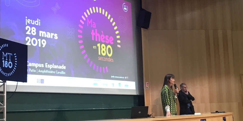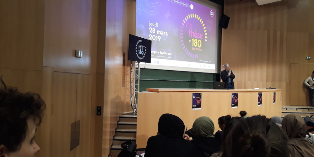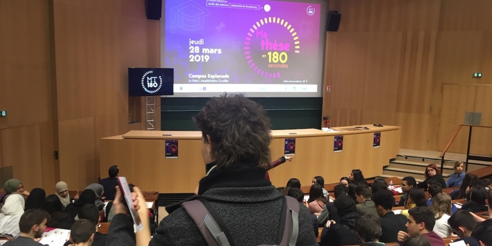 11 candidats sélectionnés parmi les doctorants des universités de Strasbourg ont présenté en 3 minutes chrono à tour de rôle leurs travaux lors de cette finale régionale devant un auditoire de 450 lycéens.
