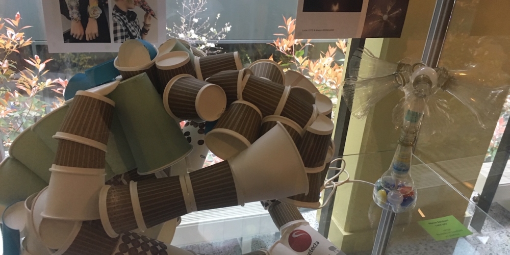 Les terminales arts appliqués ont quant à eux pu s’exprimer en détournant les déchets du quotidien en proposant des réalisations concrètes notamment dans le domaine du luminaire, du bijou et de l’objet.
