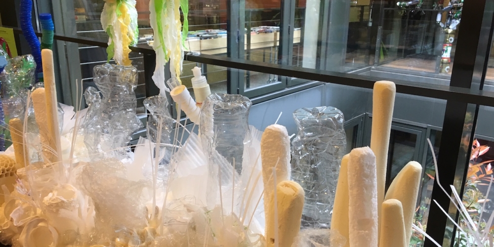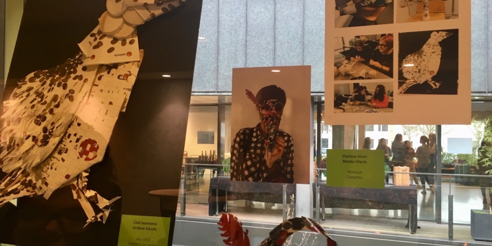 … les élèves et étudiants ont imaginé une installation dans l’espace de la médiathèque Sud d’Illkirch qui célèbre la METAMORPHOSE et SUBLIME le déchet !