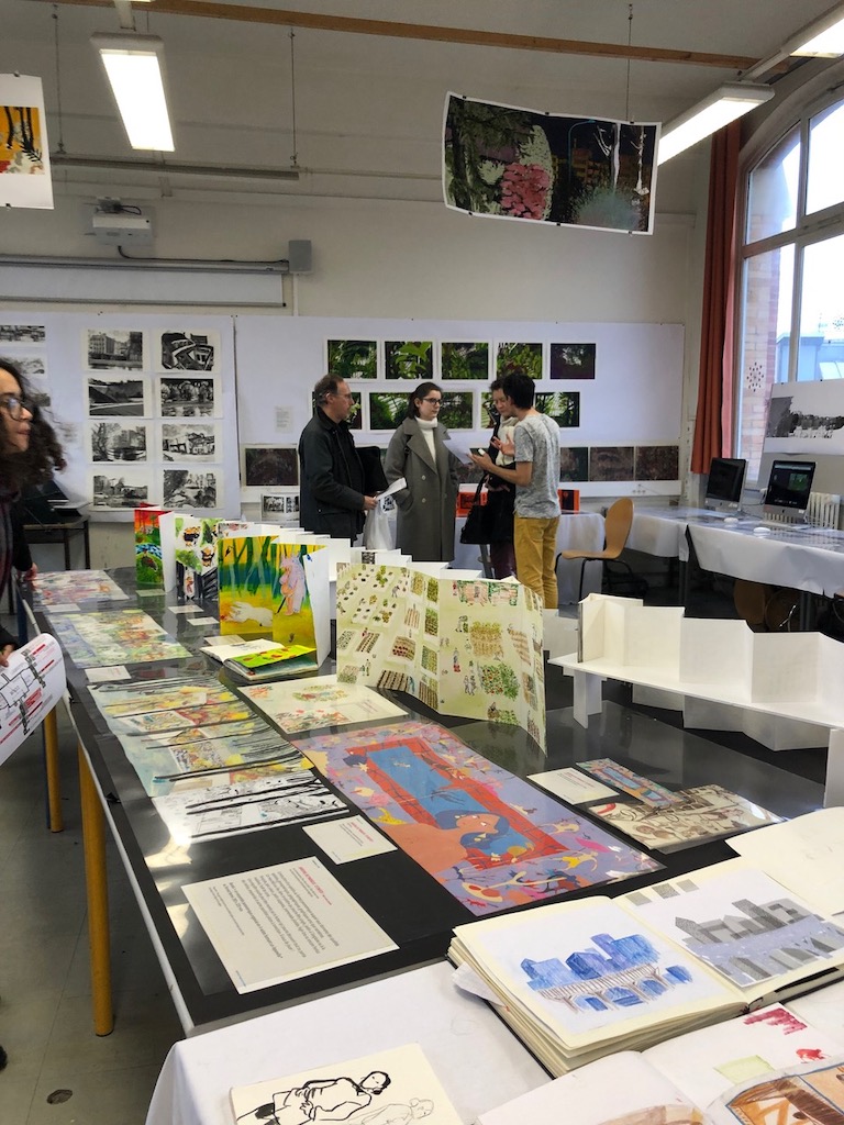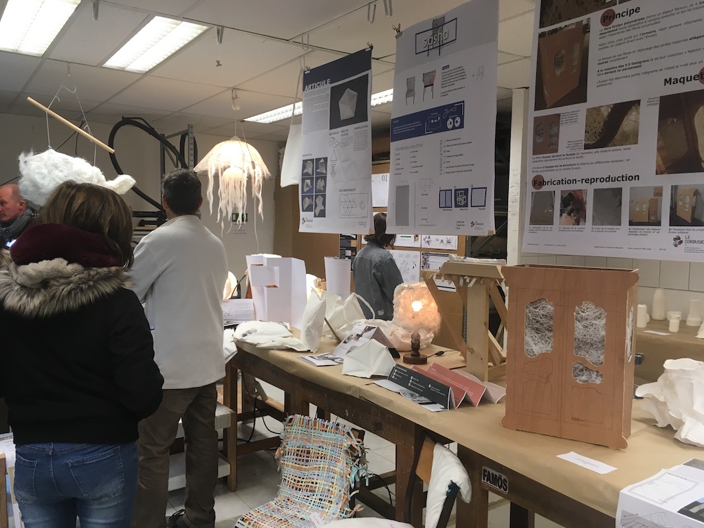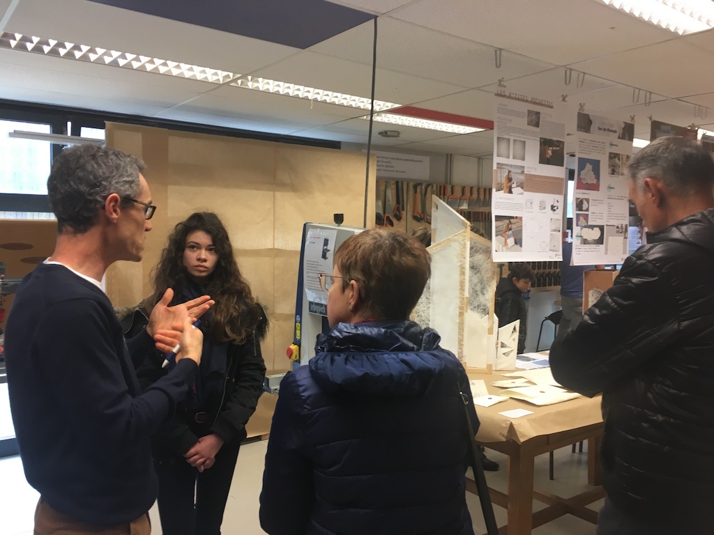 Les deux jours suivants, place aux Ecoles d’Arts. Toutes visent l’excellence et présentent des projets ambitieux mais chacune a aussi sa coloration. Les élèves se perdent dans les méandres de l’école Boulle à la découverte de métiers d’arts rares puis ils découvrent la faune et la flore si caractéristiques de l’école Duperré consacrée à la mode. A l’ENS AAMA d’Olivier de Serres, ils découvrent un design qui est orienté vers la production industrielle alors qu’à Estienne, les arts graphiques et le livre sont mis à l’honneur. Quelques uns iront encore l’école des Beaux Arts des Gobelins avant de rejoindre la gare de l’Est.