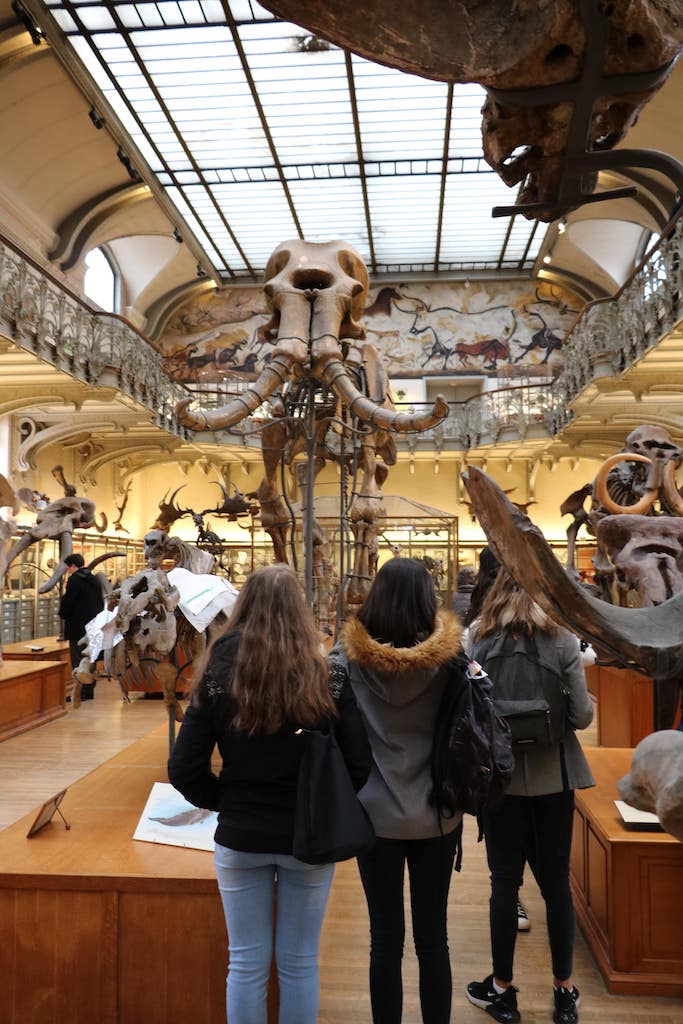 Le lundi 4 février a débuté par une croisière en bateau-mouche pour un premier aperçu des monuments de la ville. Puis au Museum d’Histoire Naturelle, au Jardin des Plantes, nous avons visité la Galerie de Paléontologie et la Galerie de Minéralogie ou de l’Évolution. Pas loin, nous avons pu admirer la façade de l’Institut du Monde Arabe et nous réchauffer à la Grande Mosquée de Paris en buvant un thé à la menthe accompagné de pâtisseries orientales. La journée s’est achevée par une balade de nuit dans les rues de Montmartre, déserte de touristes en cette saison, jusqu’au Sacré-Cœur et vue sur la Tour Eiffel scintillante.