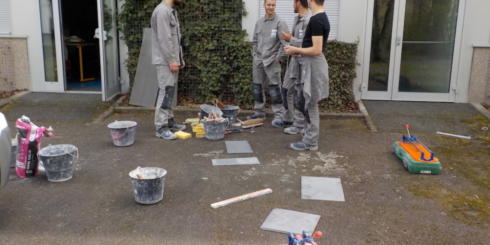 Dans le cadre de l’ouverture sur les métiers et les matières. M. Dumser et certains élèves de la classe de CAP1 carrelage sont intervenus au sein de deux classes de 6èmede M. Olivier Calvo au collège du Stockfeld. Ensemble ils ont confectionné des mosaïques en cours d’arts plastiques !