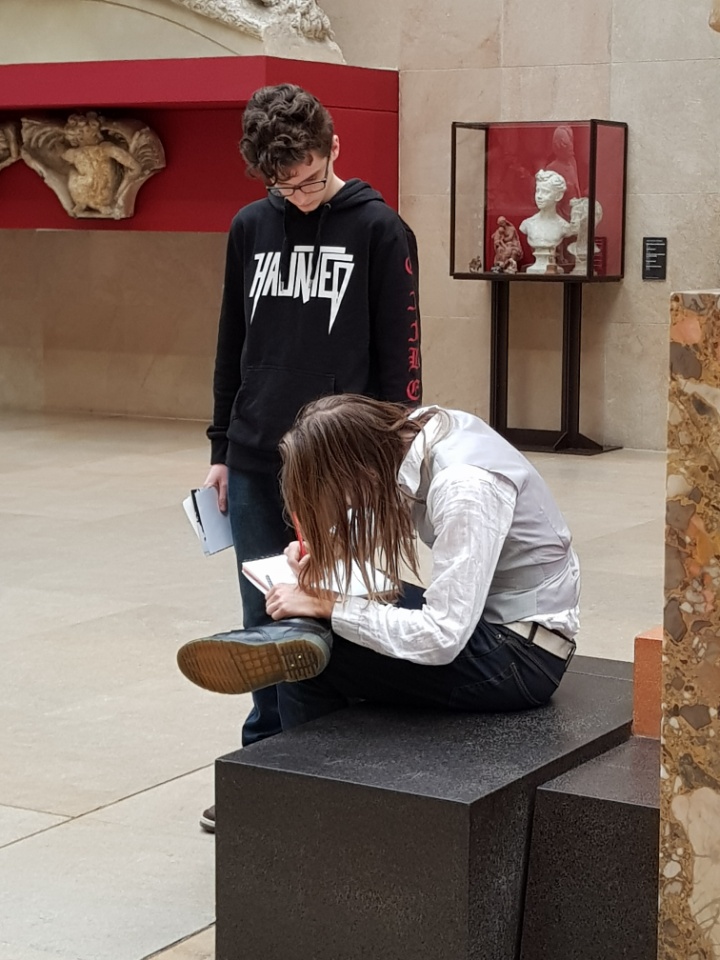 Jeudi ce fut visite du musée d’Orsay et du Louvre : les élèves ont alors eu l’occasion de fournir de petits exposés en fonction des oeuvres qu’ils avaient tirées au sort, permettant aux enseignantes d’arts appliqués et de Lettres de compléter au fur et à mesure de leurs programmes respectifs.