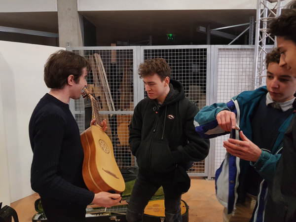 Les musiciens ont pris à cœur de présenter leurs instruments : doubles cordes et accord de la guitare baroque, cordes de basse du théorbe, cordes en boyaux et tenu de l’archet pour les violes… et répondus à des questions parfois très techniques : nature du crin pour l’archet, le renversement du manche…