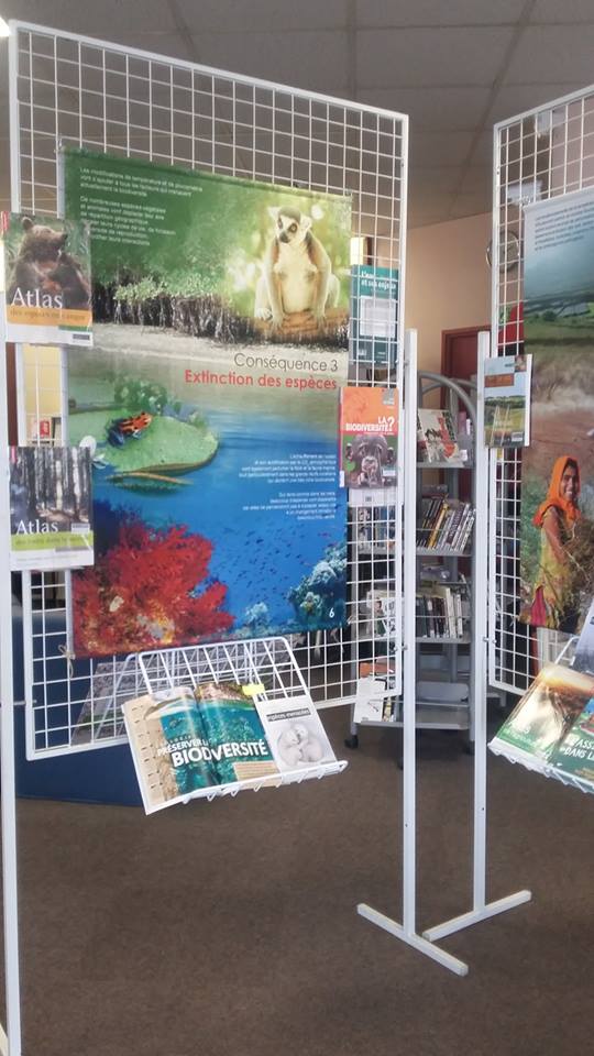 Du 27 mars au 20 avril, le CDI accueille une exposition aimablement prêtée par le Planétarium & Jardin des Sciences de l’Université de Strasbourg. Les 9 panneaux permettent de faire le point sur les dernières connaissances concernant le changement climatique : accumulation des gaz à effet de serre, fonte des glaciers et montée des eaux, extinction des espèces et insécurité alimentaire… Pour approfondir certaines thématiques les professeurs documentalistes ont sélectionné des ouvrages documentaires en regard de chaque panneaux et des clips vidéo sont également projetés en continu.