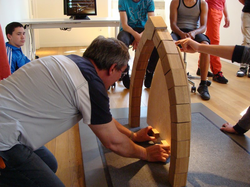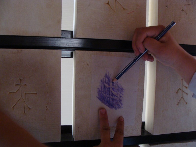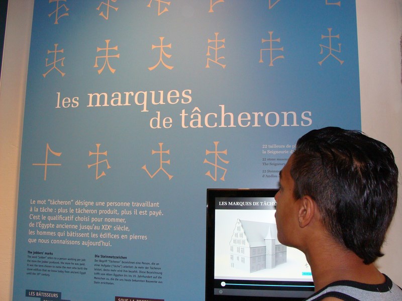 Un premier jeu éducatif leur a permis de comprendre le rôle du « tâcheron » dans la construction des édifices. Payé à la tâche, le tailleur de pierre inscrivait sa marque dans la pierre en guise de signature. Grâce à ce signe distinctif, il pouvait ainsi percevoir son salaire à la fin d’une semaine de travail.