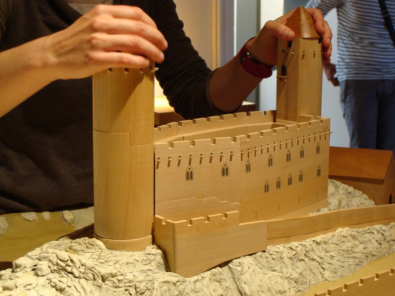 Après leur avoir montré des objets issus de fouilles archéologiques, la médiatrice les a invités à observer les étapes de la construction du château d’Andlau à partir d’une maquette.