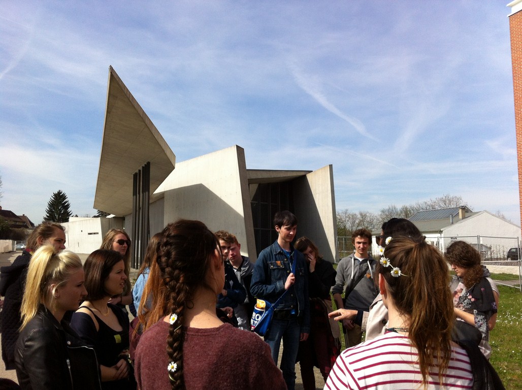 Photos : Enseignants et Corentin Schneider, Jérôme Nébinger, Quentin Herrmann, Guillaume Berg, élèves au lycée Le Corbusier