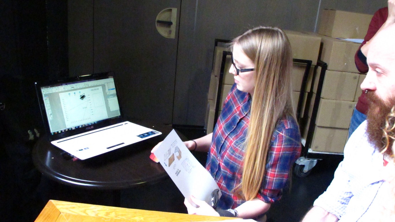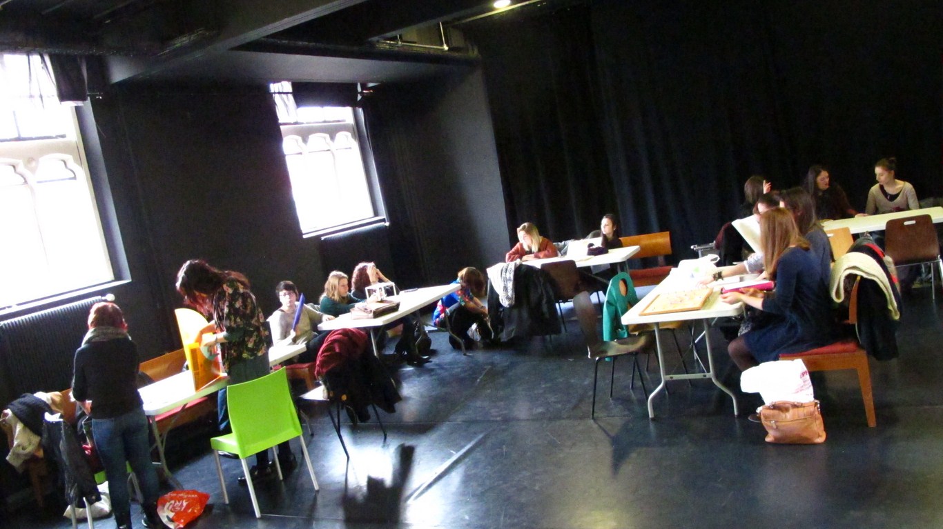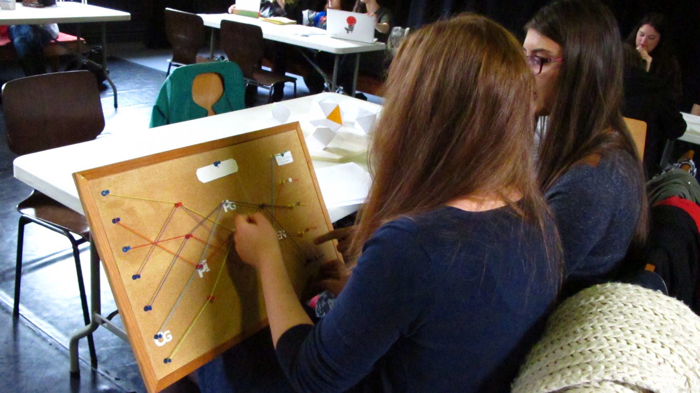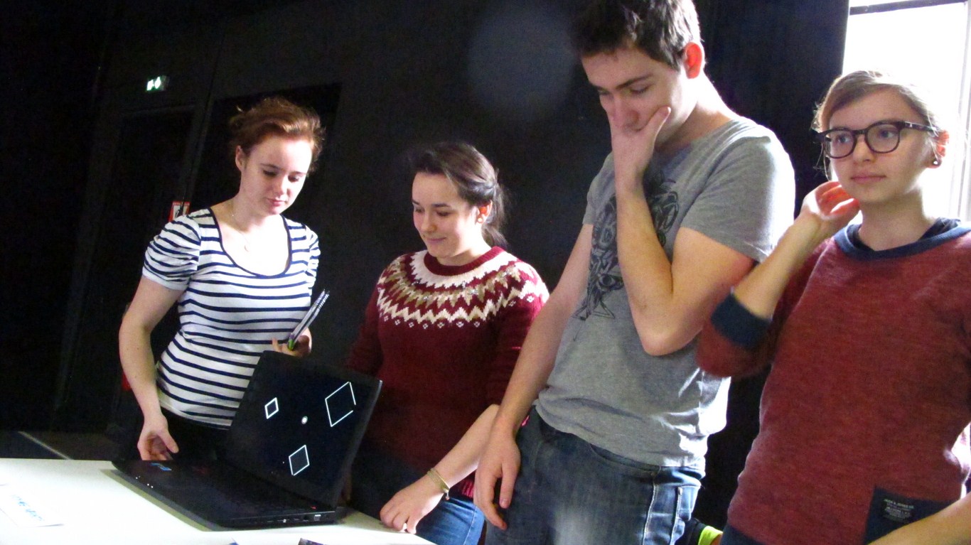 Ils ont d’abord été accueillis par Madame Cogny qui coordonne ce projet avec nous depuis plusieurs années. Puis ils ont participé à des ateliers. Au cours de l’après-midi, avec Antonio, directeur technique du Maillon, ils ont approfondi leurs connaissances techniques à partir du plan de scène du spectacle « Daral Shaga » vu au mois de décembre et que le théâtre du Maillon avait transmis pour une étude préalable en classe. A partir de ce document, ils ont pu se rendre compte concrètement de ce qu’il était possible de faire ou non au théâtre du Maillon pour accueillir le spectacle : critères de faisabilité (dimensions de la scène, hauteur, ouvertures…), matériel nécessaire (disponible au théâtre ou apporté par la compagnie), conditions de travail des artistes et techniciens de la compagnie, coordination entre ces derniers et ceux du théâtre du Maillon… Avec Manu, un de ces techniciens, ils ont visité le théâtre et ses locaux techniques. Ils se sont familiarisés avec les termes de langage utilisés, avec le matériel (câbles, lampes, spots…) qu’ils ont pu manipuler et utiliser. Ils ont également vu comment la salle était préparée avant un spectacle, comment et où s’accrochaient les appareils électriques… La visite s’est achevée par une démonstration dans la régie « son et lumière ».