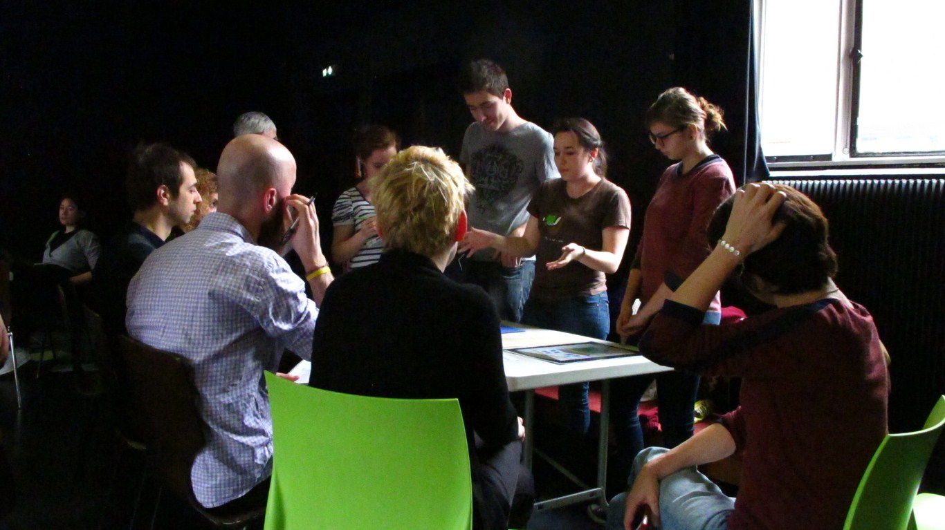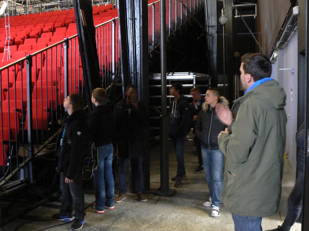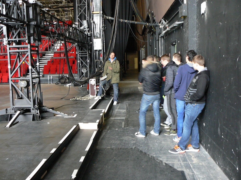 La seconde partie du projet s’est déroulée le jeudi 2 avril. Les participants ont été invités à se rendre dans les locaux du théâtre pour visiter les coulisses de ce lieu de spectacles strasbourgeois, pour y rencontrer les techniciens et pour se familiariser avec les appareils utilisés lors des représentations. L’objectif était de montrer aux élèves ce qui se passe dans les coulisses avant et pendant un spectacle : comment se prépare la représentation, comment s’installe le matériel puis comment se font les manipulations d’appareils pour obtenir les éclairages appropriés pendant le spectacle…