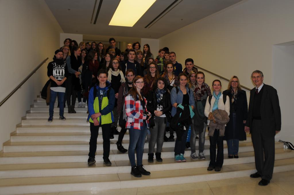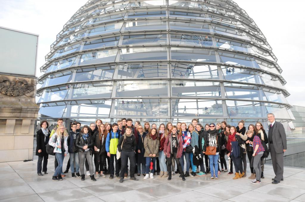 Français et Allemands ont visité le Parlement et ses annexes aux côtés du député Ulrich Petzold et de son assistant Carl Canzler. Le député s’est livré sans détour ni langue de bois au débat ouvert avec les élèves avant de leur faire découvrir les aspects de l’architecture, de l’art et du fonctionnement des édifices parlementaires du Deutscher Bundestag. Le circuit de la visite de trois heures en allemand s’est achevé au sommet de la coupole de verre avec une vue imprenable sur la capitale, moment inoubliable pour l’ensemble des participants. Puis les élèves ont eu droit à une heure de shopping au Sony-Center situé sur la Potsdamer Platz après avoir visité le Mémorial de l’Holocauste sous une pluie glaciale et un vent tourbillonnant.