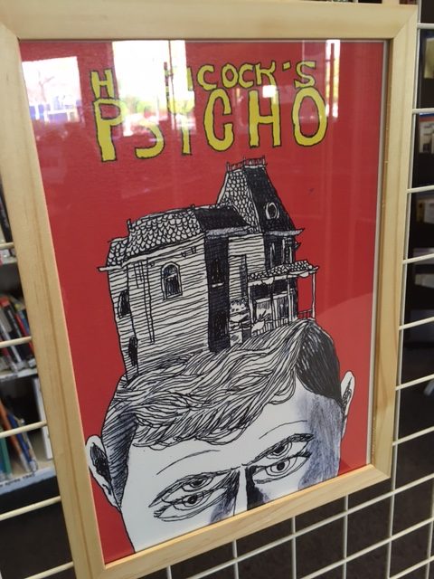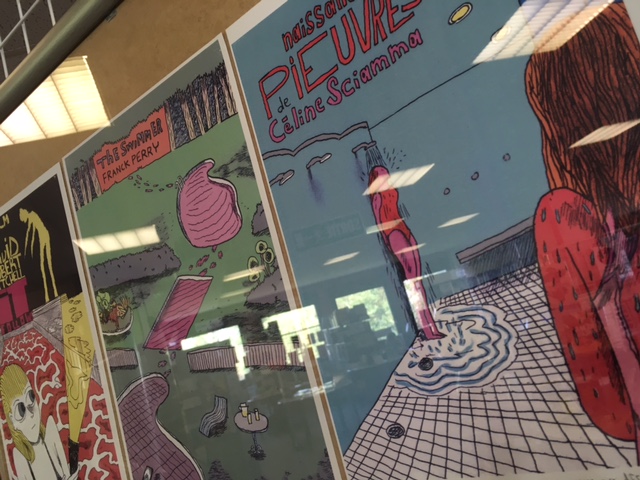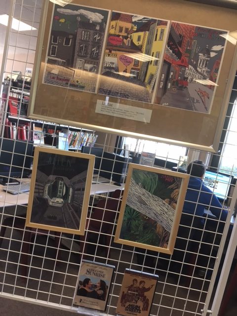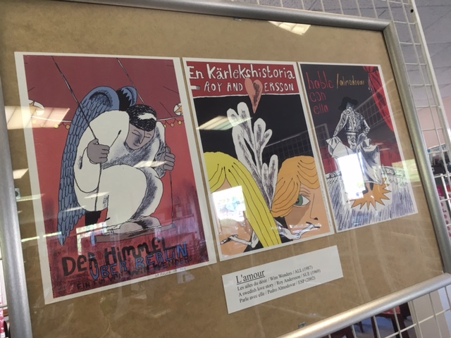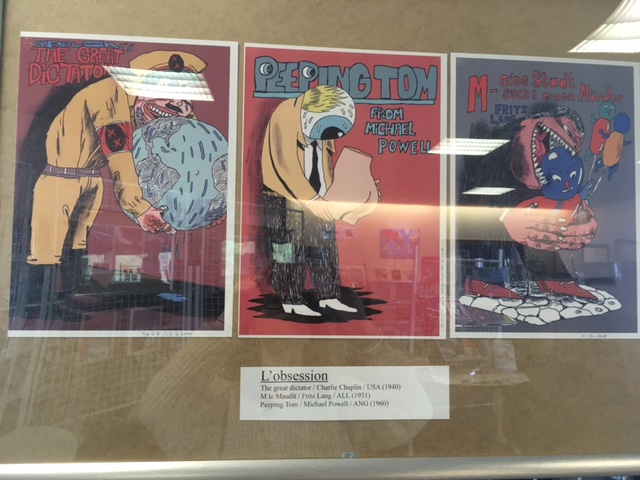 Pas de doute, les affiches d’Axel vous donneront envie de voir les films et notre artiste a tout prévu : les dessins sont accompagnés des oeuvres qui l’ont inspiré, et chaque DVD peut être emprunté auprès des documentalistes pendant la durée de l’exposition.