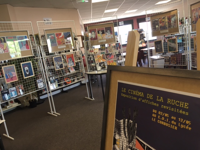 Le CDI présente une sélection d’illustrations originales sur le thème du cinéma au travers d’une exposition intitulée “Le cinéma de la Ruche”.
