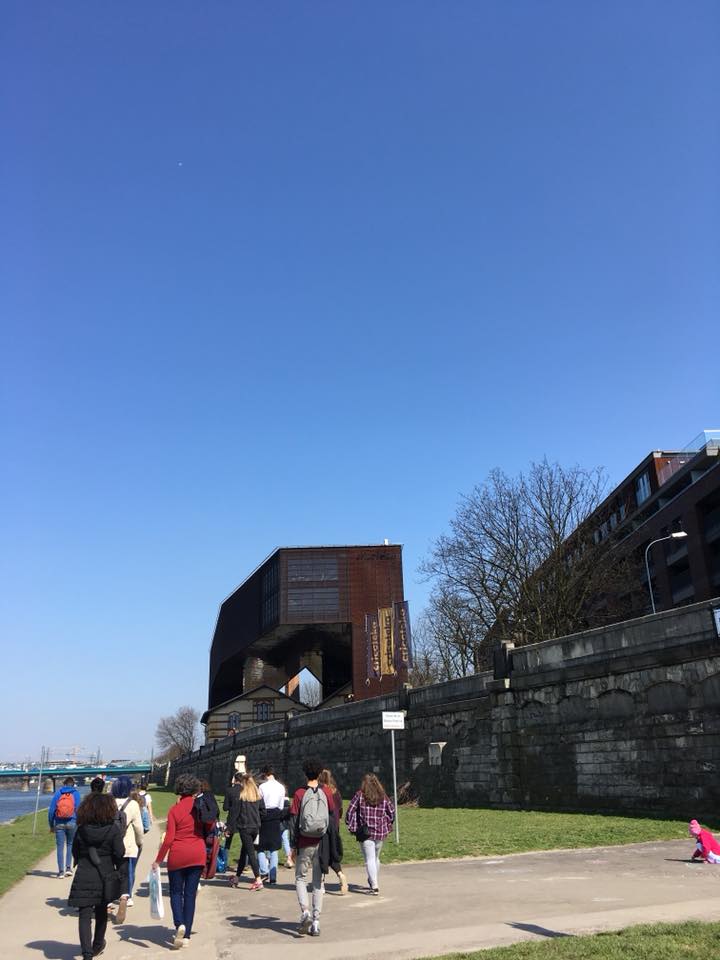 Cette prestation était au cœur du voyage d’une semaine que nous avons entrepris, mais elle n’en était pas le seul objectif. Subventionné par la Fondation pour la Mémoire de la Shoah et le Ministère de la Défense, le déplacement devait permettre aux élèves et étudiants de travailler sur le devoir de mémoire autour du thème « émigration et diaspora juive ». Il s’agissait de aussi de découvrir des cultures, de comprendre et d’accepter la différence. Visite du camp d’Auschwitz Birkenau, du musée Schindler, du quartier de Kazimierz et de l’ancien ghetto de Cracovie avec la pharmacie de l’aigle et la place Boghatellow ghetta. Visite de la vieille ville de Cracovie mais aussi des quartiers rénovés de Podgorze et Zablocie avec le Musée Kantor et le MOCAK (musée d’art contemporain), ainsi que de Nowa Huta (pour les BTS), quartier construit par les autorités soviétiques dans les années 50-60. Ces bouts d’histoire, dans toutes leurs tragédies, ces cultures que l’on a cherché à museler, ces hommes à qui l’on a dénié les droits fondamentaux, sont autant de points d’ancrage à une réflexion citoyenne et une compréhension du monde contemporain.