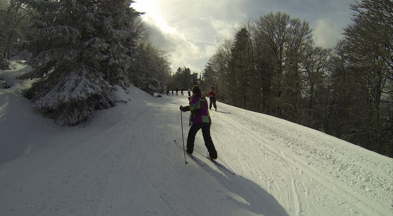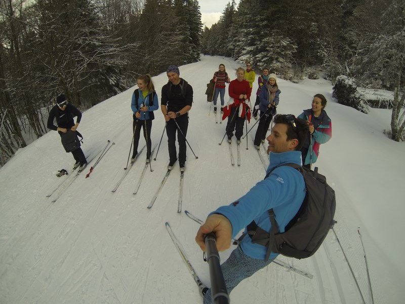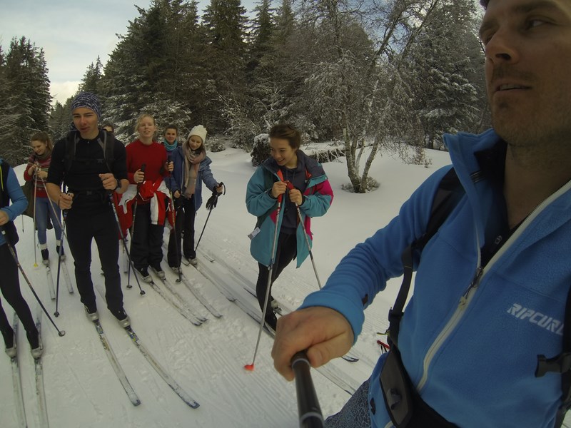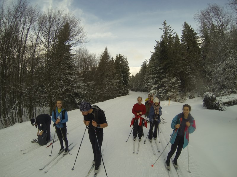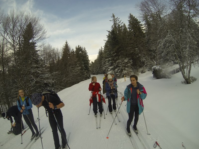 Les conditions météorologiques étaient correctes : un peu nuageux et humide avec des rafales de vents, mais également quelques trouées de soleil ont permis aux élèves de découvrir les plaisirs de la glisse ! Pas mal de chutes en sortant un peu des traces, mais l’ambiance était excellente.