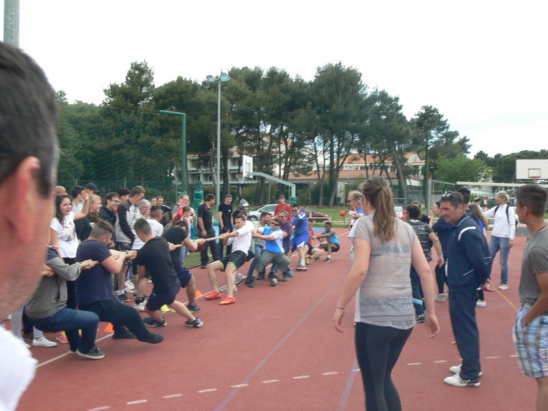 Pendant une demie journée, des rencontres ont été organisées dans un très beau complexe sportif situé au bord de la mer Adriatique et où il n’a manqué que d’un peu de soleil. Matches de football, de volley et de basket, mais aussi badminton étaient au programme. « C’était bien, mais trop tôt dans la semaine. On a perdu parce qu’on n’a pas eu assez de temps pour s’entraîner, mais on était plus fort qu’eux » affirment Kevin et Julian. « C’était génial, il faudrait le refaire. On ne se connaissait pas, mais on a bien rigolé » reconnaît Adrien, alors qu’Anaïs était volontaire pour participer à plusieurs matches de badminton. Avant la remise des récompenses données par le service départemental de l’U.N.S.S., des épreuves de course en sac et de tir de corde ont donné l’occasion à nos lycéens de s’illustrer et de leur rappeler que cette dernière épreuve était inscrite aux Jeux Olympiques de Paris en 1924.