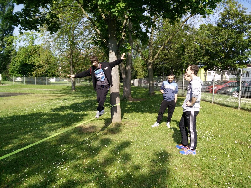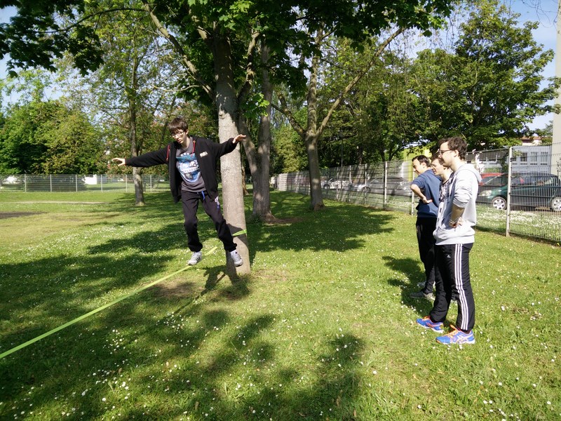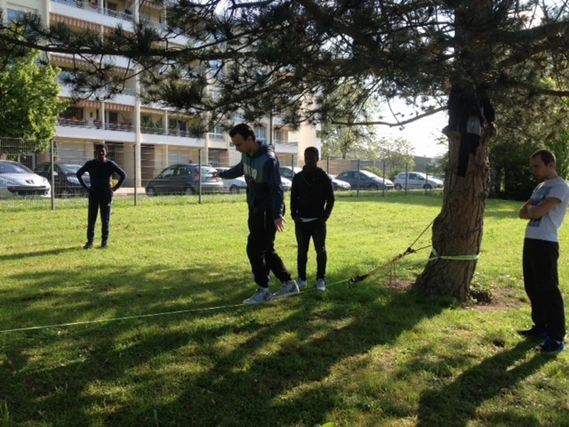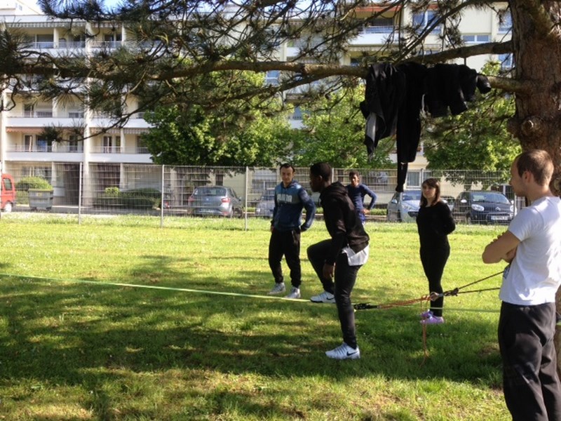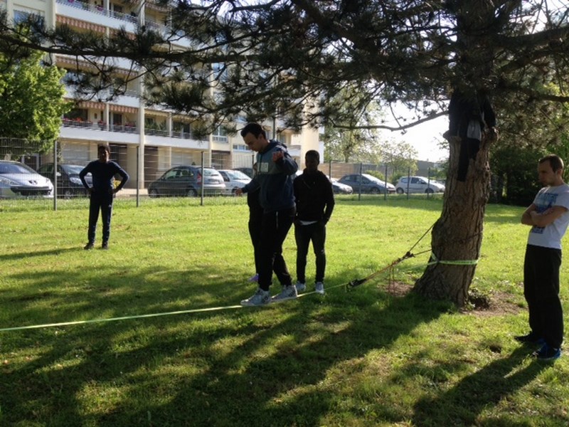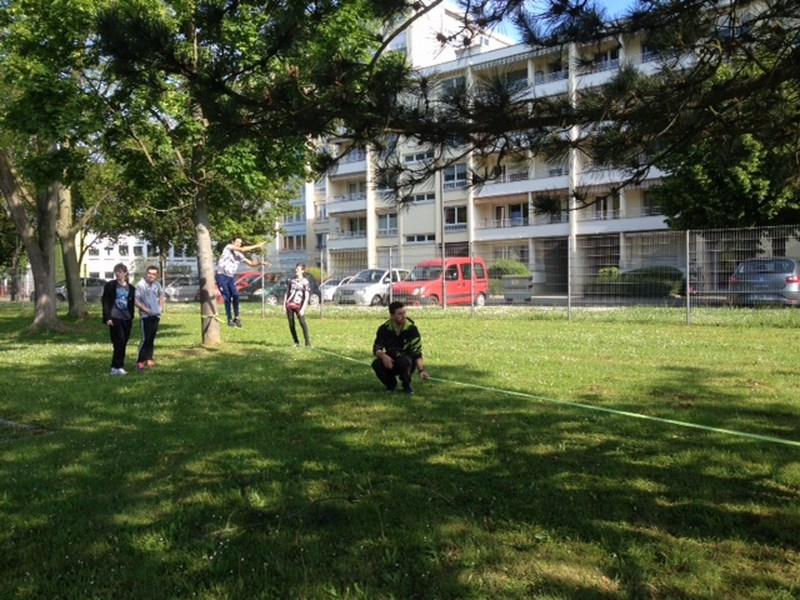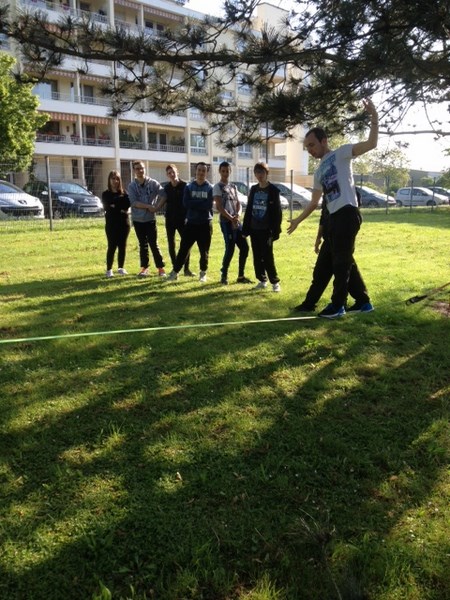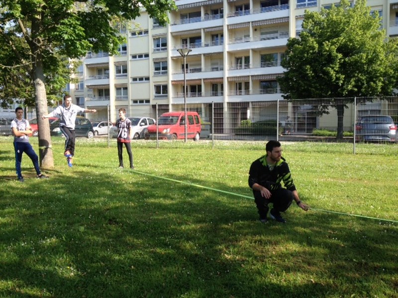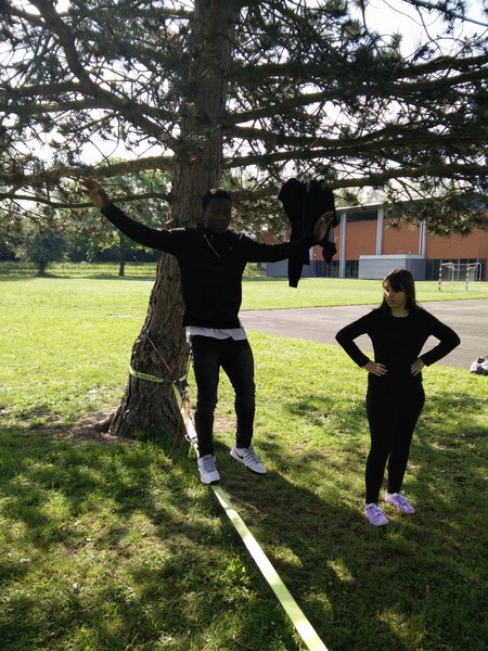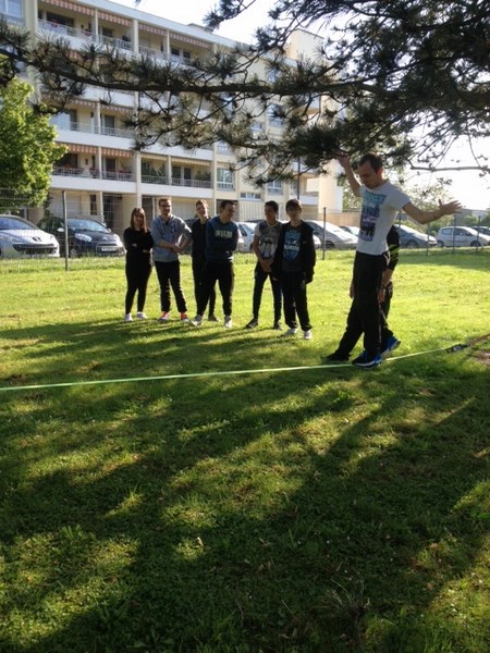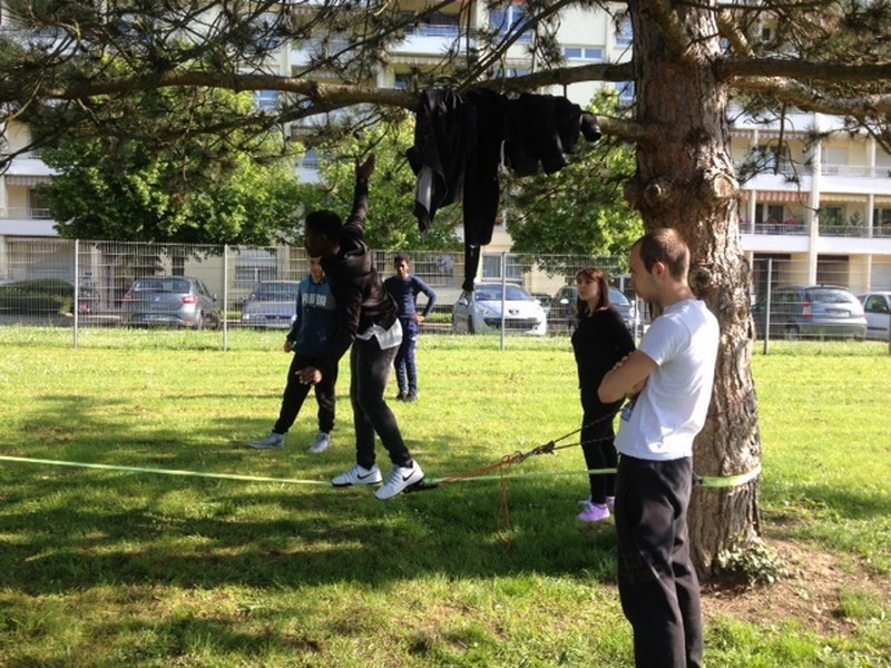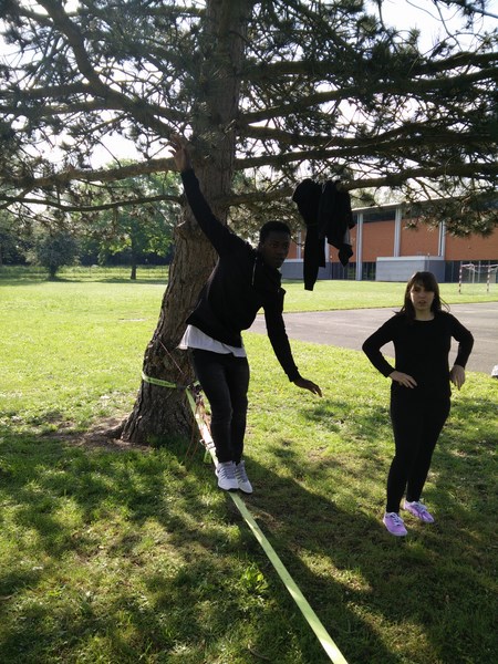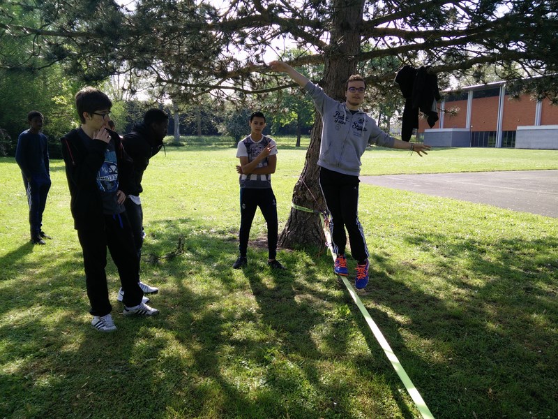 Souvenirs d’une séance d’initiation à la slackline en EPS avec la classe des 3èmes PréPro, avec messieurs Lichlté et Pirrera.