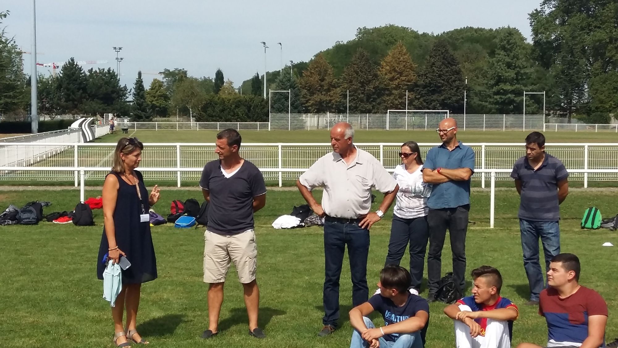Lors des journées d’accueil proposées en début d’année scolaire, les nouveaux élèves des classes de CAP 1° année du lycée Le Corbusier se voient traditionnellement proposer des activités sportives. Ceci pour leur permettre d’apprendre à se connaître et à “mieux vivre ensemble” au lycée. Cette année, François Keller nous a fait l’honneur de venir saluer nos élèves en présence de Madame Muller, proviseure adjointe du lycée. S’adressant à la centaine de jeunes présents, et en prenant pour exemple Kevin Gameiro et Morgan Schneiderlin, les actuels internationaux français qu’il a dirigé lorsqu’ils évoluaient à Strasbourg, François Keller a fait un parallèle entre le monde du travail et le football. Il incité nos élèves à poursuivre leurs efforts pour mener leurs études à terme comme l’ont fait avant eux les deux internationaux français pour avoir la carrière et la réussite que l’on connait aujourd’hui. En louant les qualités de l’effort, de la persévérance, de la volonté, du courage, de la motivation, il leur a montré que la poursuite d’études étaient une nécessité pour gagner sa place dans la sociéte actuelle. Et que chacun pouvait y arriver avec ses propres qualités…