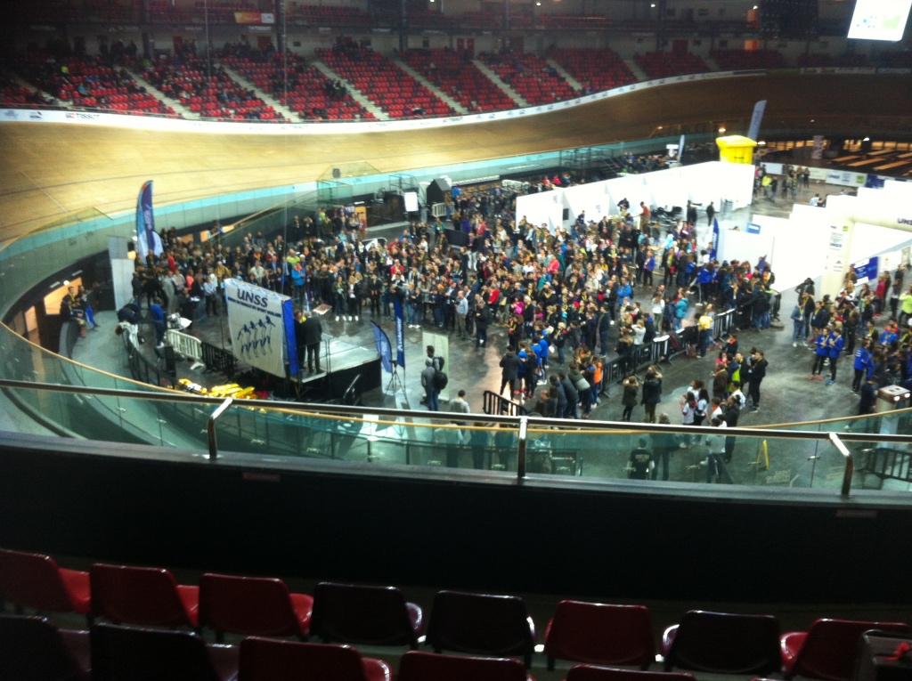 La veille du championnat, rassemblés dans le vélodrome national de Saint Quentin en Yvelines, nos coureurs ont participé avec les 2000 élèves présents au lancement officiel de « l’année de l’olympisme » et au lancement de l’opération « Paris 2024 » en présence de l’équipe de France de cyclisme sur piste et d’Elodie Clouvel, vice championne olympique de pentathlon moderne à Rio. Le lendemain, ils ont pu croiser les athlètes Muriel Hurtis, plusieurs fois championne du monde et médaillée olympique en athlétisme et Ladji Doucouré, double champion du monde d’athlétisme (voir photos).