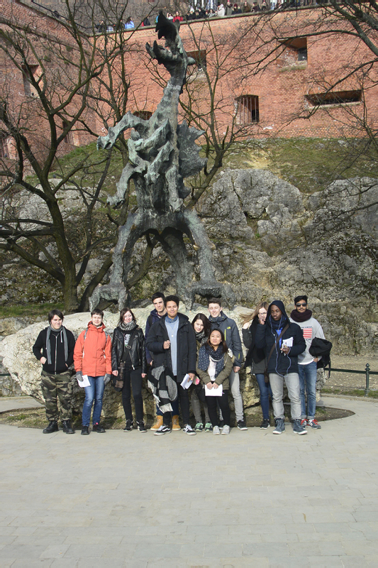 Ce sont donc 33 élèves de 1°G (S et L) et quelques élèves de 1°AA1 participant à l’atelier théâtre en anglais qui se sont envolés le 13 mars 2016 à destination de Cracovie et y ont été accueillis dans les familles de leurs correspondants polonais du lycée n°V Auguste Witkowski jusqu’au 20 mars.