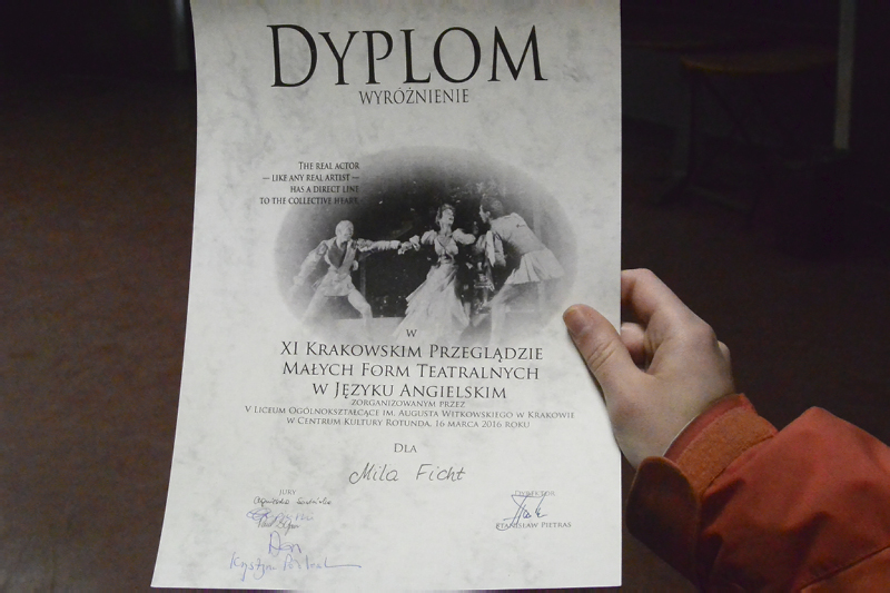 Le troisième jour fut ponctué d’échanges avec les correspondants et professeurs polonais du Lycée Witkowski. Au programme : participation au festival de théâtre en anglais le matin et, l’après-midi, cours de physique et de chimie en anglais par Mme Wiatte, de littérature française sur le poète Apollinaire par M. Aubert et en allemand sur le Bauhaus par M. Rudolf. Félicitons encore nos acteurs principaux, Milla Ficht et Jules Gross, qui ont su relever le défi de présenter la pièce Movable people de Nikki Harmon et ont obtenu deux prix fièrement alors que participaient à ce festival des acteurs polonais avec un niveau exceptionnel en anglais.