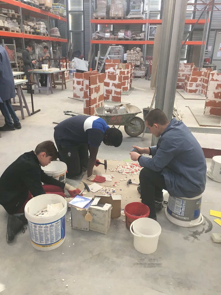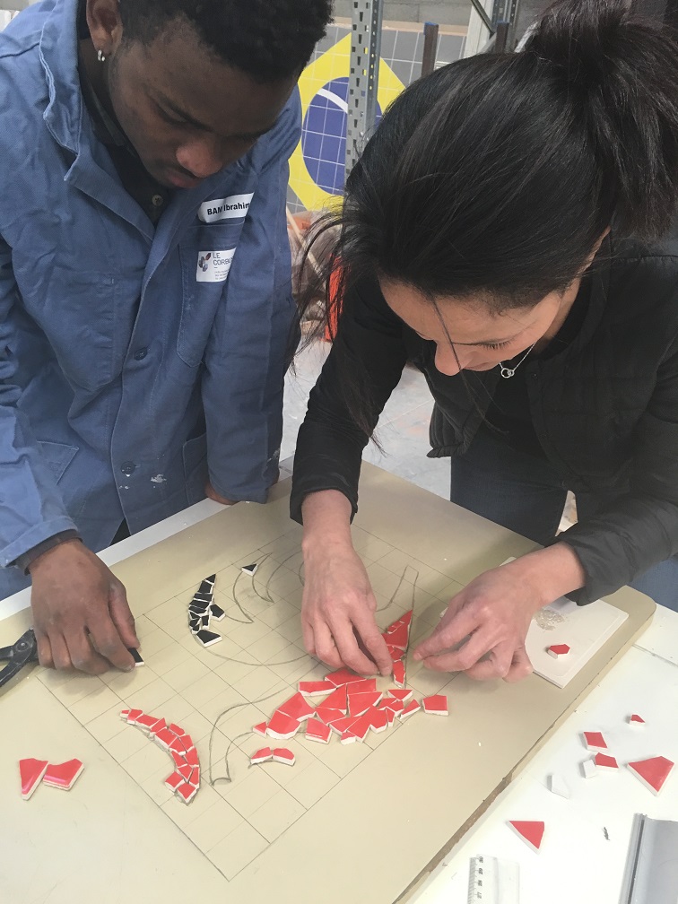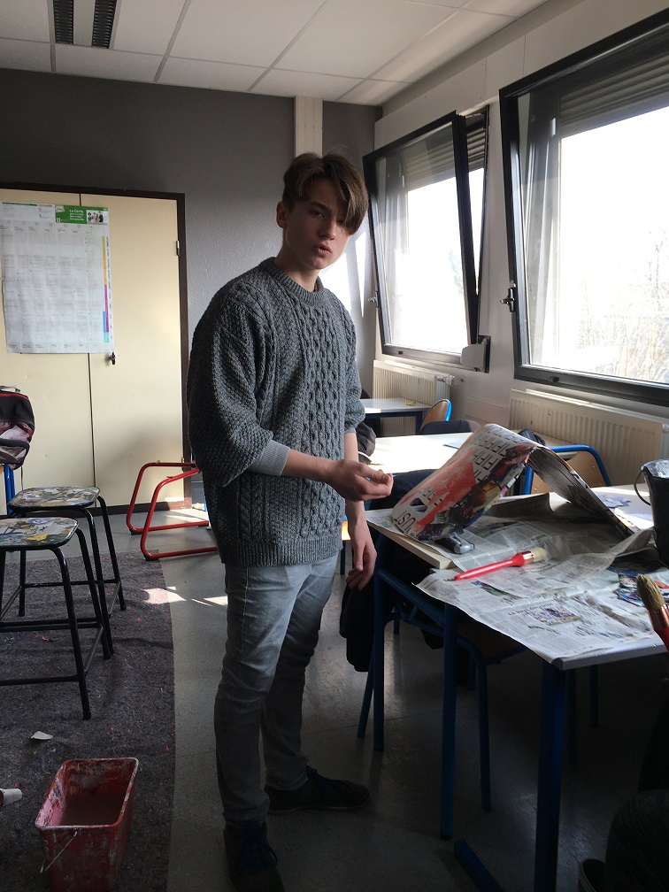 Dans ce cadre, les élèves ont décidé de s’inscrire dans une démarche de développement durable en utilisant des matériaux recyclés (journaux, carrelage, peinture etc…) et/ou biologiques (colle, vernis…).