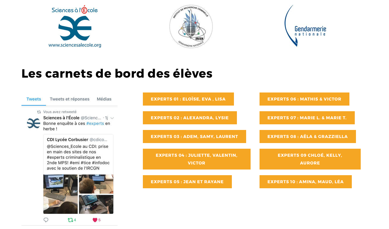 Ce sont aussi des rencontres avec des professionnels de la démarche d’investigation et la tenue par les élèves de carnets de bord en ligne afin de développer leur culture de la recherche, leur rapport à l’information et la publication web !