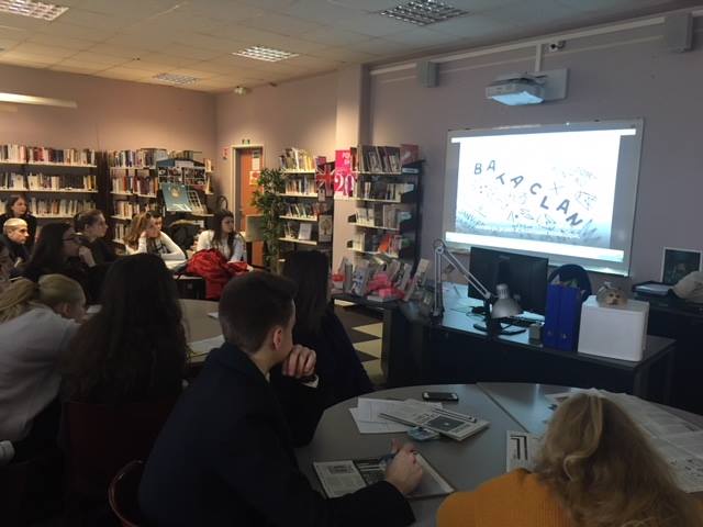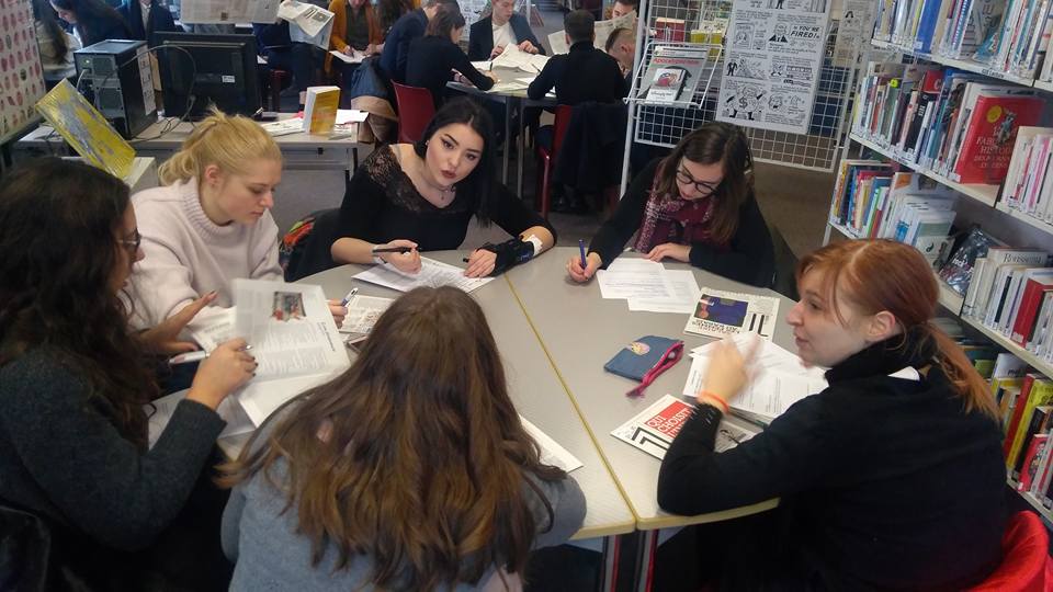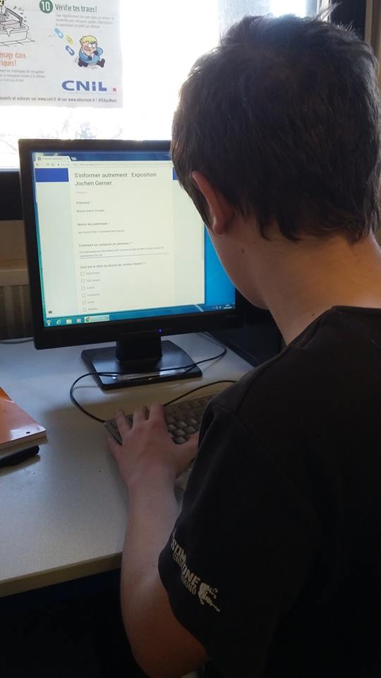 Les élèves ont pu découvrir une sélection de documents du CDI sur chaque thème abordé par l’artiste, répondre à un questionnaire en ligne de découverte, suivre un atelier pour apprendre à débusquer un détournement d’image ou encore réaliser une planche à la manière de Jochen Gerner,