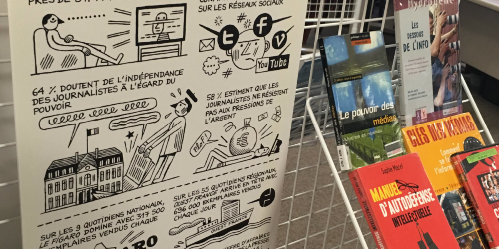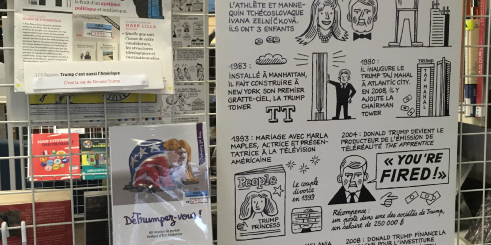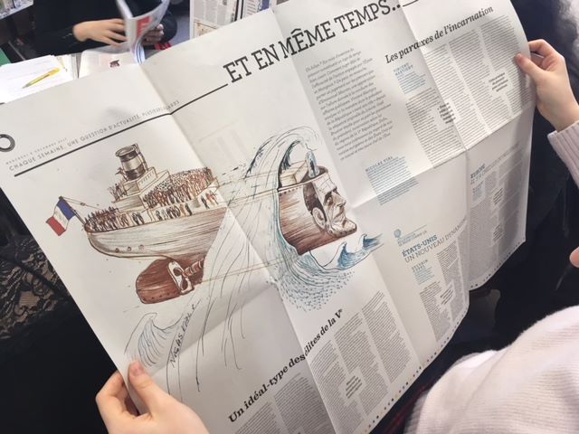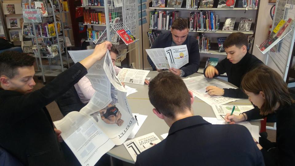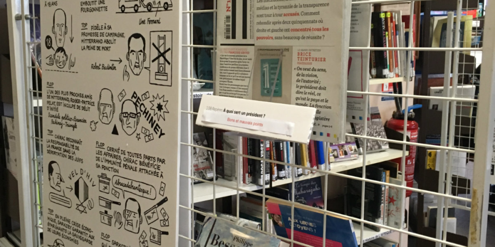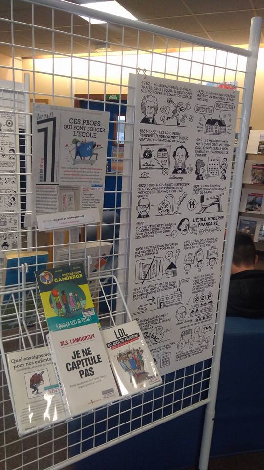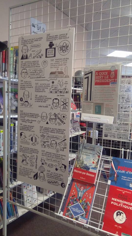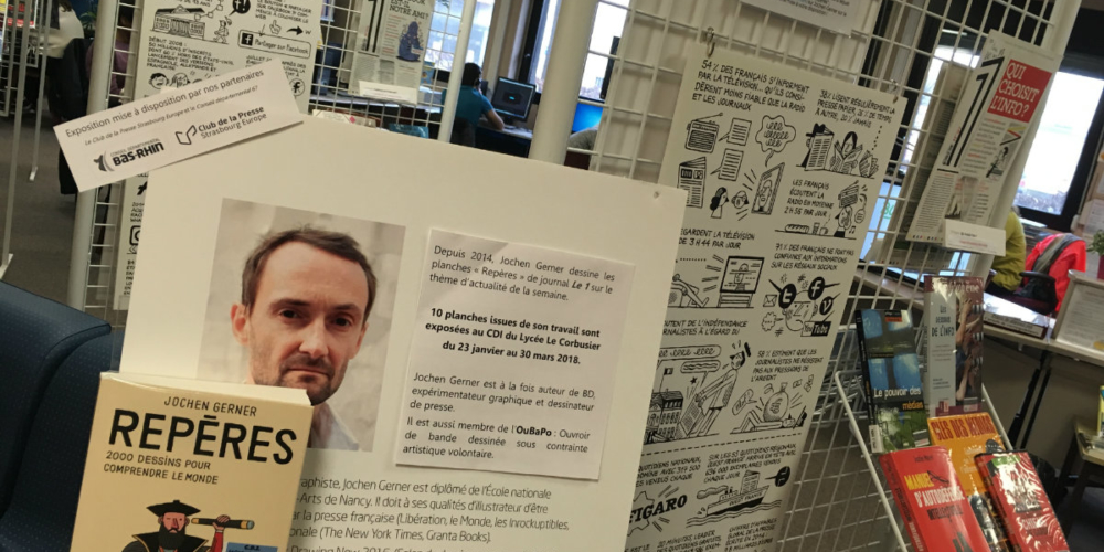 Explorer l’actualité autrement, c’est ce qu’ont proposé les professeurs documentalistes pendant un mois au CDI. Formidable pour réfléchir avec les élèves aux modes narratifs, pour imaginer des ateliers de sketchnote ou simplement développer l’appétence des élèves pour l’actualité, le travail de Jochen Gerner pour le journal “Le 1” a été exposé et exploité par plusieurs classes du lycée (LP et LEGT) ainsi que par une classe de BTS du lycée voisin Alexandre Dumas.
