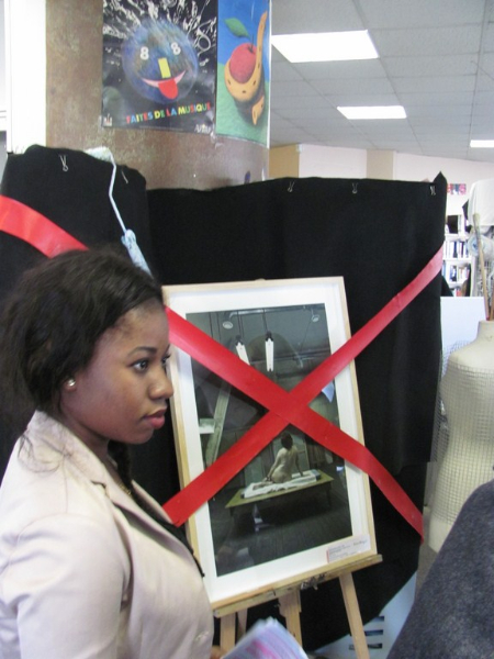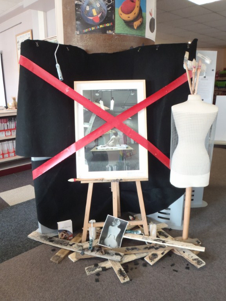 Guidé par leurs enseignantes d’Arts appliqués, chaque groupe a ensuite proposé une mise en scène de l’oeuvre explorée. Proposant de véritables installations, mettant en regard de chaque oeuvre des livres choisis au CDI ou des objets symboliques ils ont cherché à traduire leur connaissance de chaque oeuvre dans son contexte et exprimer leur interprétation sur l’objet de censure dont elles se font l’écho. Les élèves ont ainsi su livrer leur regard à leurs camarades avec audace et brio.