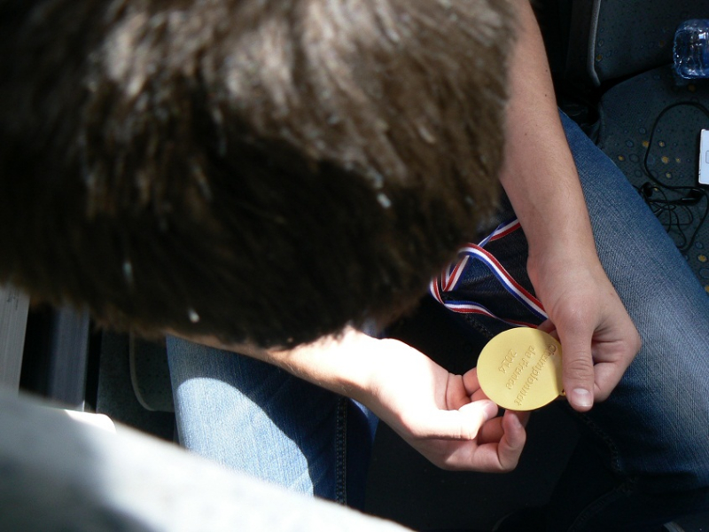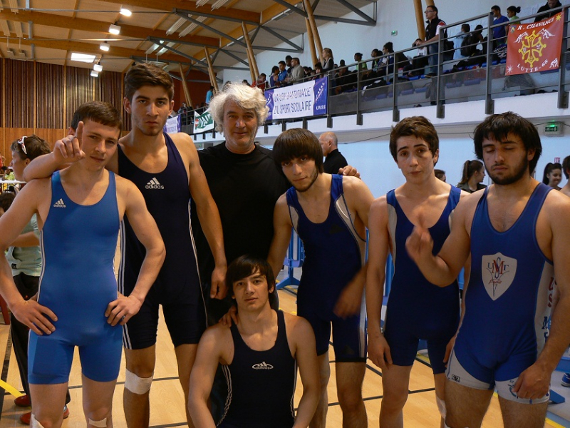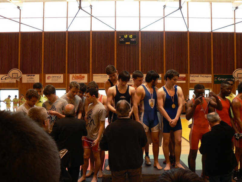 Mais le titre a été définitivement acquis lors du dernier match. Les lycéens de l’île de la Réunion avaient perdu une rencontre auparavant et savaient qu’ils devaient obligatoirement battre le lycée Le Corbusier pour s’adjuger la médaille d’or. Quant à nous, une rencontre se terminant par une égalité nous suffisait pour gagner. Mais même si plusieurs combats ont été jusqu’à leurs termes, le suspense a été vite levé : les cinq premiers lutteurs du lycée ont gagné leurs matches et le sixième a été déclaré perdant après avoir mis sont adversaire au sol ! Mais l’essentiel était fait et le titre déjà acquis.