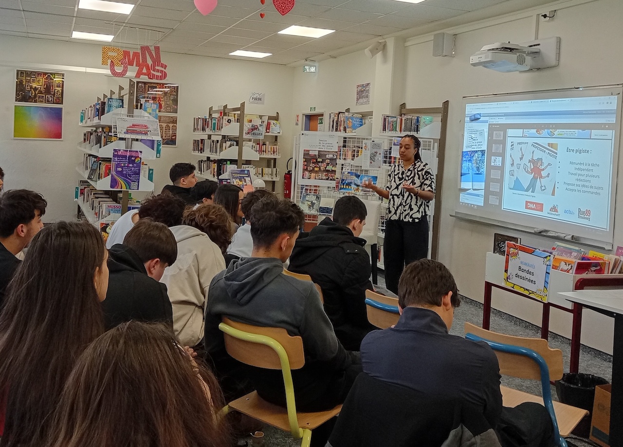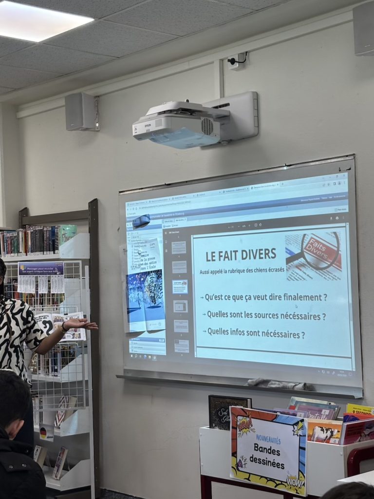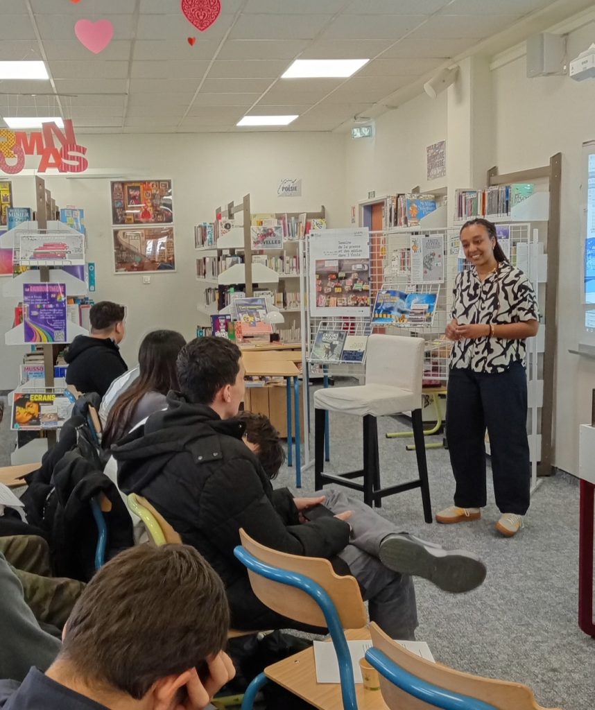Le 24 mars, dans le cadre de l’éducation aux médias et à l’information et de l’objet d’étude en français « s’informer, informer, communiquer », la classe de 2PMCD a participé aux r”encontres de journalistes” au CDI avec Olivia Kouassi, une journaliste qui travaille dans pour les médias suivants : DNA, Rue89 Strasbourg, Mediapart ou encore pour l’Actu.fr.