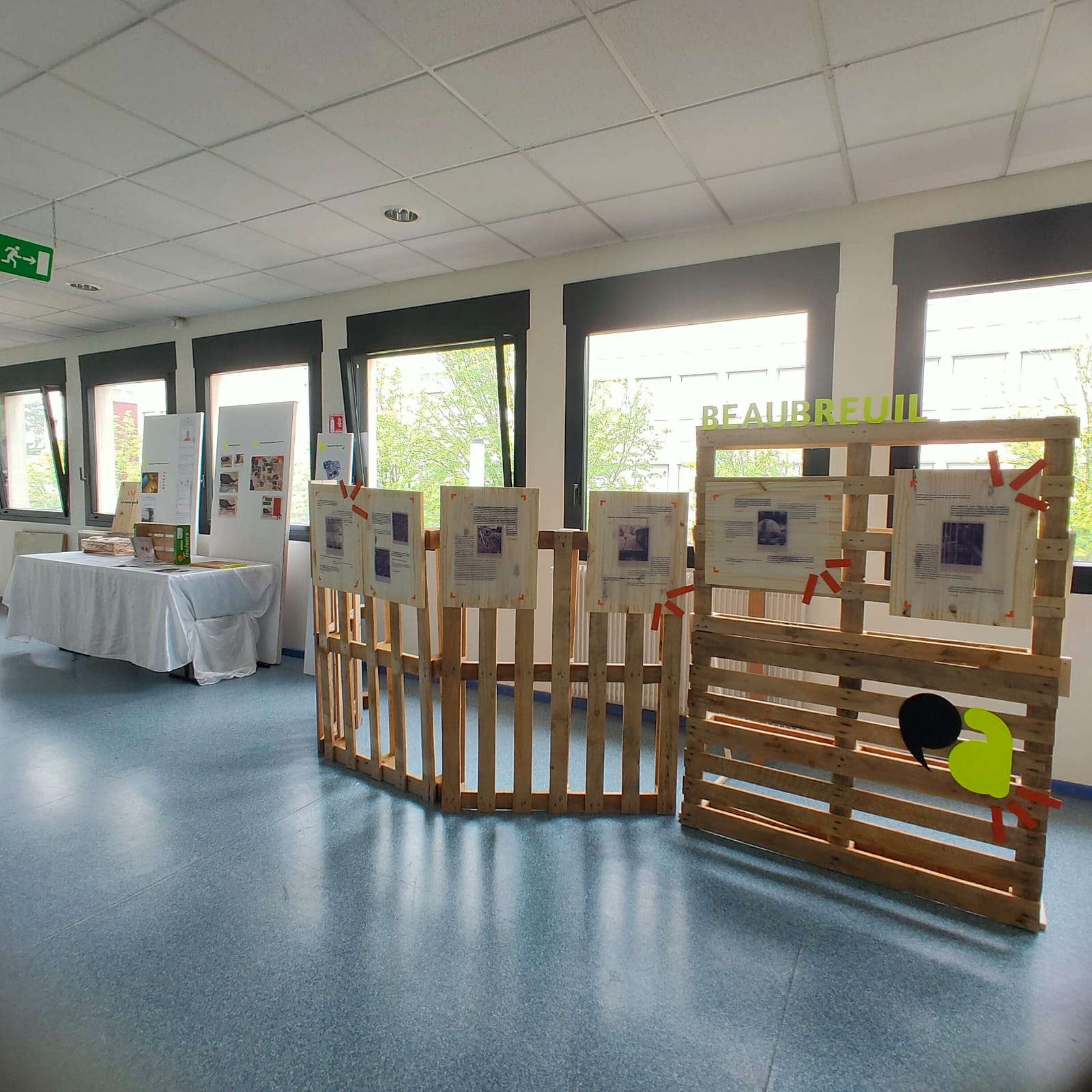 Enfin, il a fallu penser à un dispositif d’exposition qui soit fait de matériaux accessibles, qui soit mobile et simple à réaliser. C’est ainsi que j’ai choisi la palette en bois comme principaux éléments de mon exposition. Après des recherches et plusieurs tests, j’ai pu arriver à sa réalisation finale. Cependant certains éléments restent encore à repenser pour renforcer sa stabilité et son étanchéité.