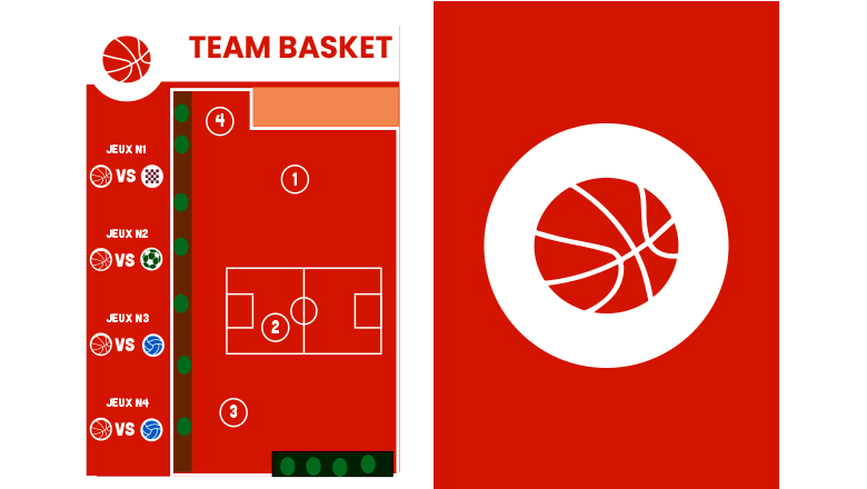 Les cartes ont eu un changement graphique au cours du projet, car le premier graphisme qui reprend les codes du graphisme présent dans mon mémoire avec les formes/contre-forme d’élément sportif et les couleurs de la couverture de mon mémoire. Cependant, les couleurs et la disposition ne permettait pas une lecture agréable, les formes n’étaient pas assez mises en avant et enfin, les couleurs rouges et noires n’étaient pas en accord avec l’esprit de convivialité et de lien sociaux. Ainsi, j’ai opté pour des cartes aux couleurs plus vivantes avec les éléments plus gros et en blanc qui permet de mieux transmettre l’état d’esprit du projet.